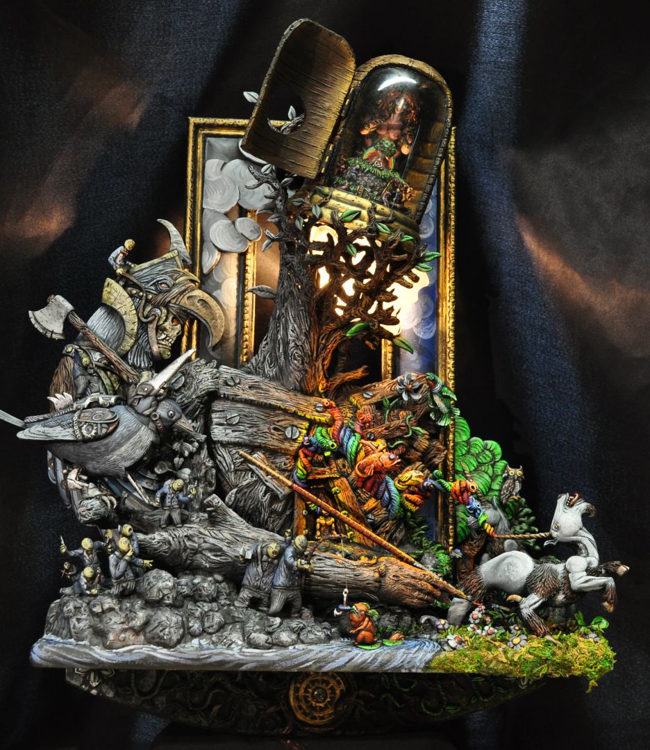 I am mixed media artist- creating narrative relief sculptures. I’m inspired by anthropology, mythology, psychology and the things that make us humans tick in the direction of the infinite