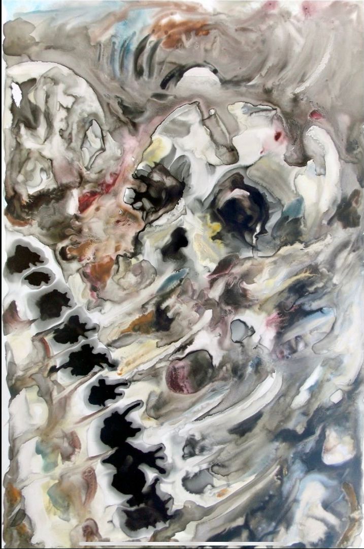 The elusive and unpredictable media of water media Yupo Paper effectively follows my ideas of always changing, living spirit.