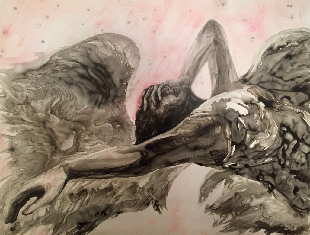 I am painting in watercolors and acrylic inks on Yupo Paper. My paintings are grouped in several series, that represent different ideas. Series vary from raw, emotional, to thoughtful, almost meditative concepts. I use my own sensibility and combine it with thoughts and events of contemporary nature, such as war, power, love, mostly big ideas. I personally experienced the civil war, and I come from the family that survived WWII. The stories and overall wisdom and narrative from those events crossed decades and filtered my present expression and my truths that I present through my art.
