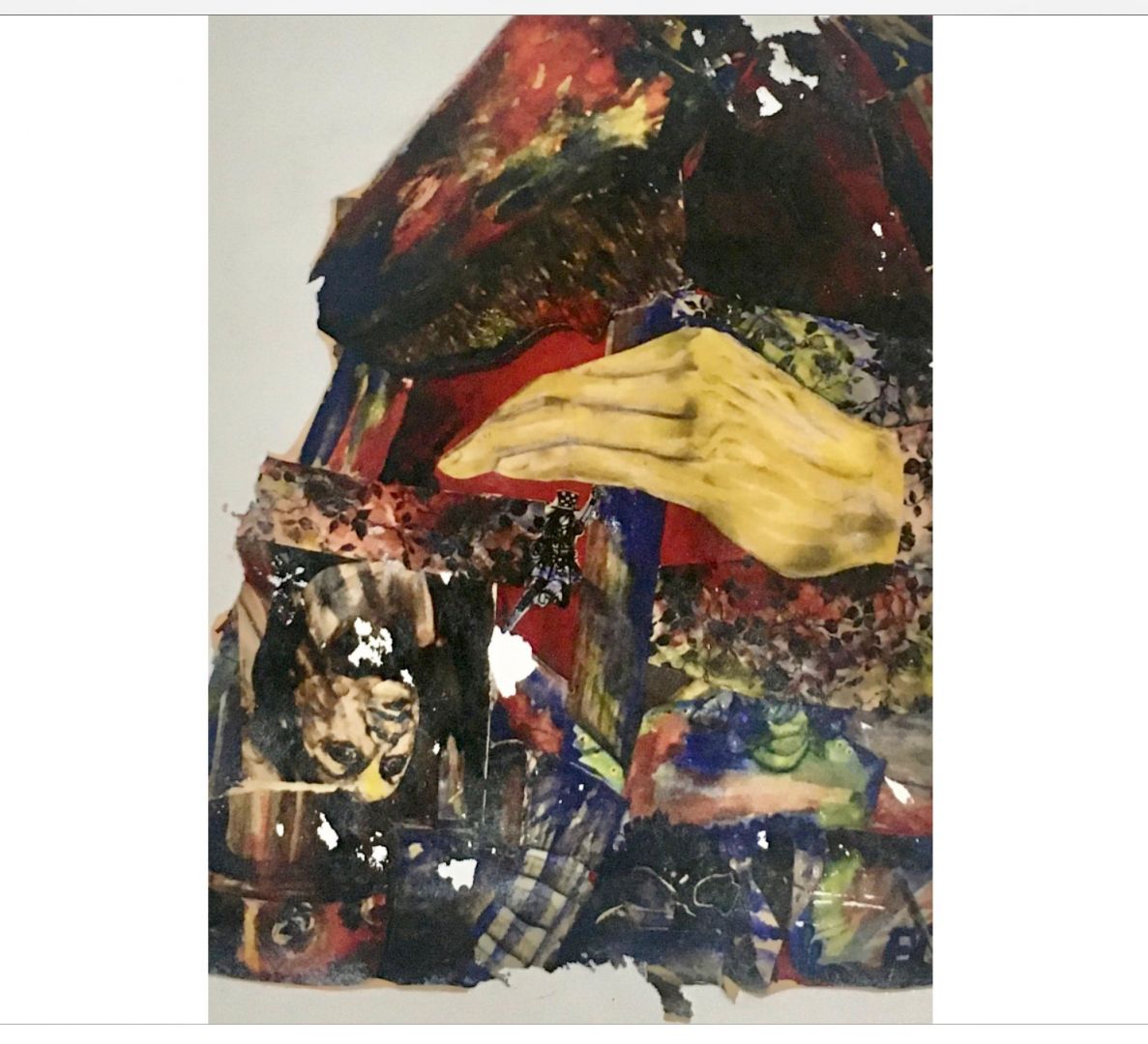 In my most recent experiments in decoupage medium, I explore the ideas of mental illness and homelessness. Just as in my paintings, I use observation, contemplation, and my recent dealings and experience with a family member, to elevate myself from the reality, and find deeper meaning, aesthetics in those catastrophic human conditions.