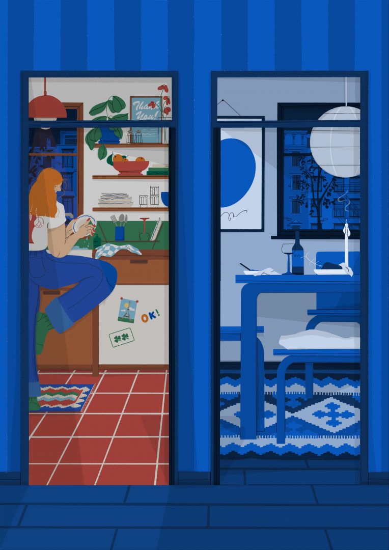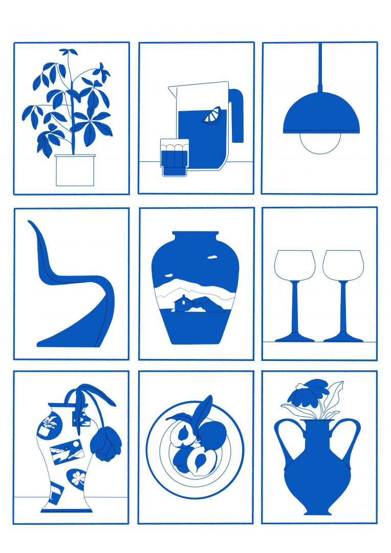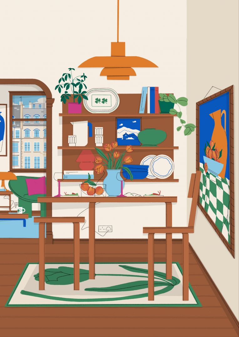 I’m an illustrator who recently just moved back home to Belfast after living in London and Brighton for the last while. My work is so inspired by my love of interiors, dream furniture, and clutter! As someone who was (and still is!) obsessed with home makeover shows, the sims and moving my room around my work is an extension of this love. I draw inspiration from films and set design. I draw furniture, ceramics, and sculpture I wish I owned! I can find inspiration from walking past an interesting building, watching a film with fantastic styling, or seeing people in fun fashion. My work aims to communicate ideas and feelings through bold, dynamic characters and objects.