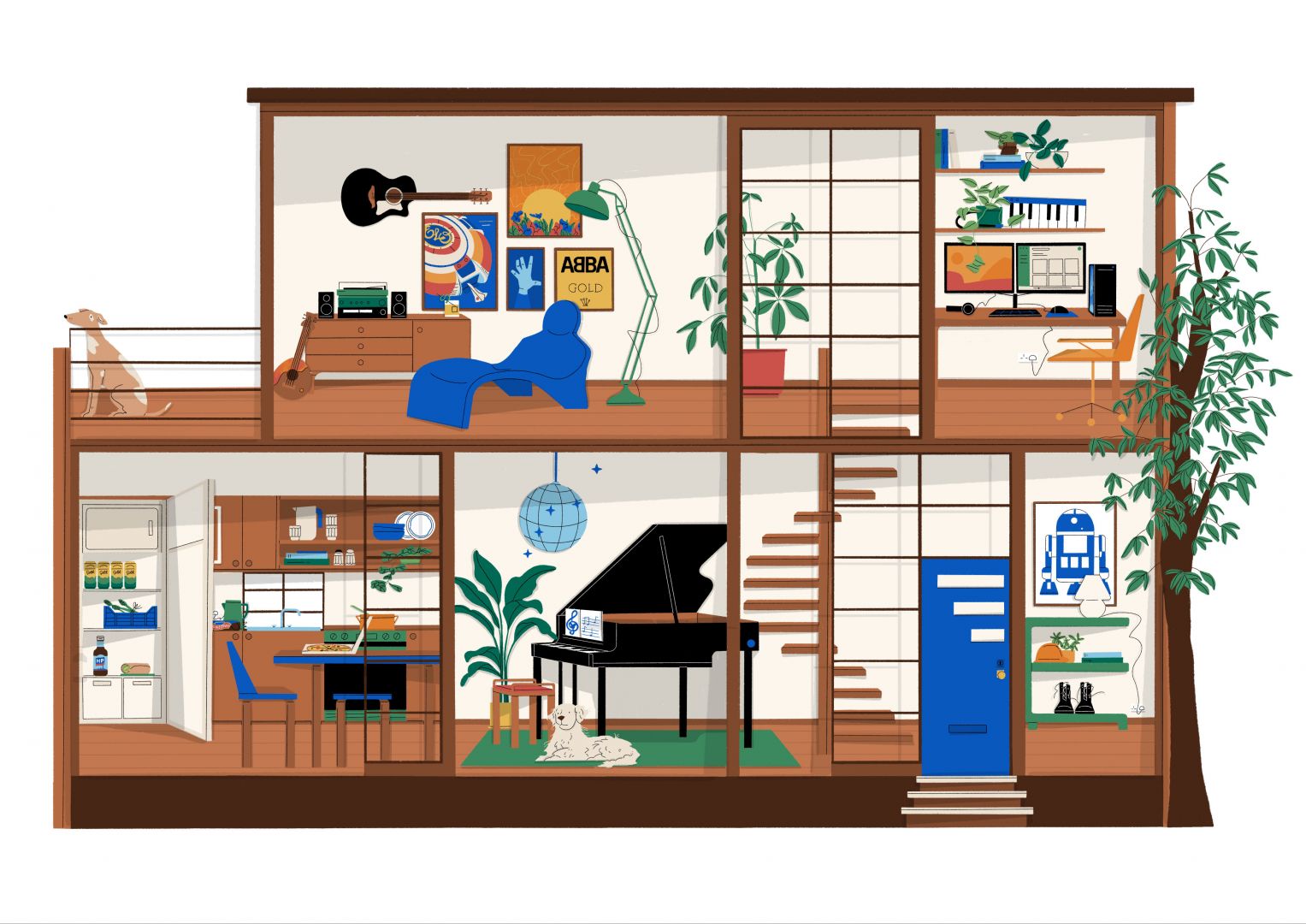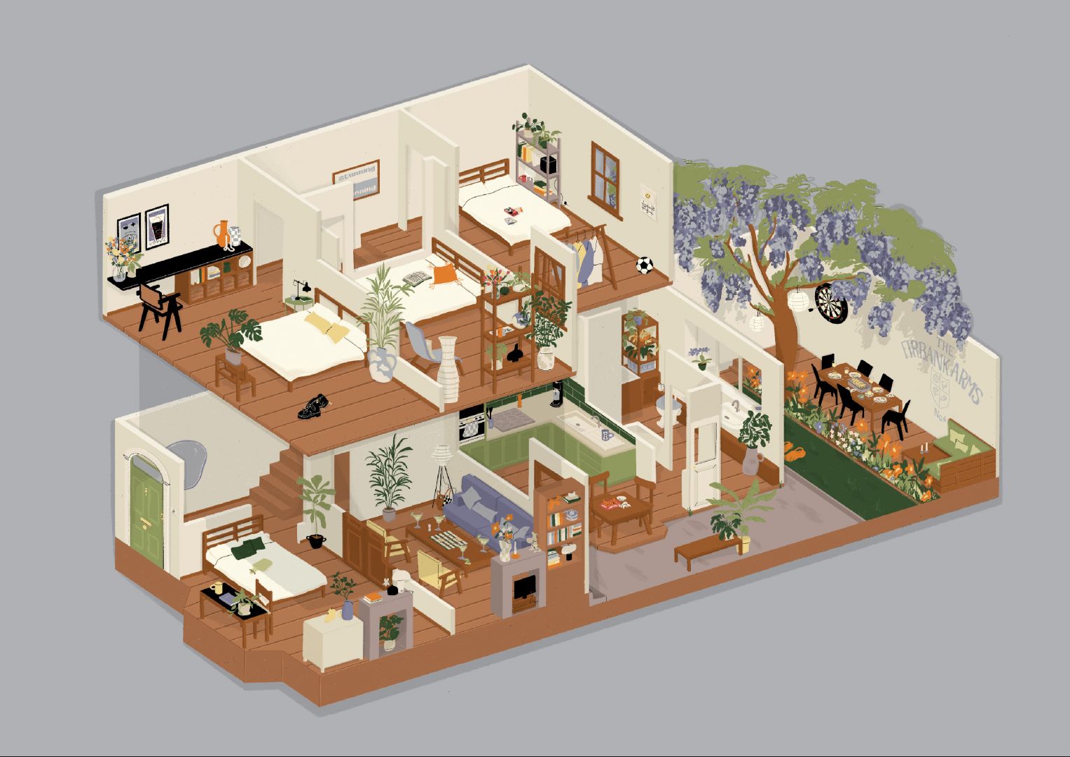 I always wanted to work as someone who gets to draw things. My grandfather was an architect and I remember just being obsessed with his architectural plans. I would draw my own and plan out where all my things would go in my dream house – so I guess it’s no surprise that I’m still drawing my dream house in my work now! After studying illustration at the University of Brighton I was surrounded by so many amazing, talented people, we also shared our studio with Graphic Designers which gave me a wider view of the art and design world. It allowed me to consider how I could make this my life, how I could keep drawing and make it my career. Illustrators mostly work freelance so I guess starting my own business was just the natural direction my career took. It’s definitely an ongoing process, I’ve worked in other things through the years to make it possible to keep illustration going. It isn’t naturally an easy process, you face setbacks and uncertainty, busier and quieter periods and it’s important to remind yourself why you are doing it in those times. But the sense of pride you get from showing someone your work and them getting it and being excited about it is just a fantastic feeling!