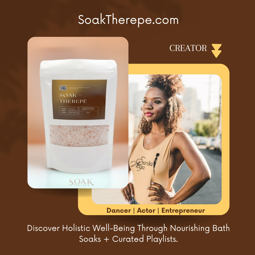 That’s why I’m so excited about my business endeavor. As well as being an artist, I’m currently earning my MBA from Cal State University Long Beach, focusing in disruptive technology and sustainably. It’s a wild ride juggling the creative side with the business side, but I love every minute of it. Through this process I’ve launched my bath soak brand, Soak Therepē. I created these soaks to save my sore muscles after long dance sessions, but then I realized they were doing wonders for my mental health too! Taking just 30 minutes a week to soak nourishes my body and mind. As with my dancing, my brand isn’t just about bath soaks; it’s about fostering a culture of self-love and resilience in a world that often overlooks it; same as what I incorporate into my artistic career.