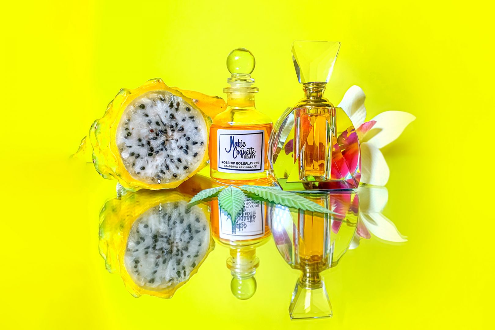 It’s our mission to make sustainability sexy! We were bored with the crunchy branding we typically see with eco-friendly and CBD brands. Everything about our brand pops, from our neon color palette, to our cheeky provocative imagery, and of course our name. Nakie Coquette is a double entendre for our brand, Nakie (naked) referring to our pure ingredients and Coquette (flirt), referring to our cheeky approach.
