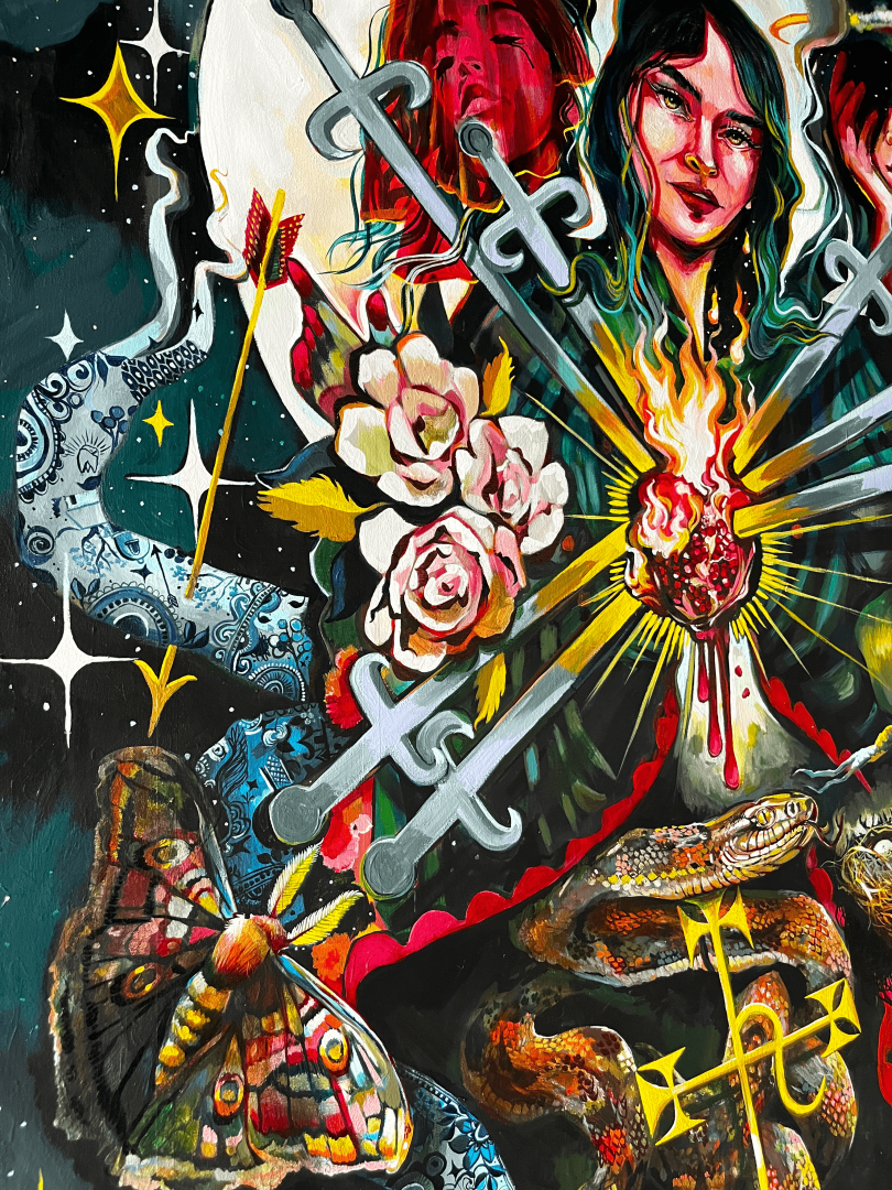 Because I do a lot of different things besides painting, I also have an alter project that ended up becoming a retail shop called ” the chaotic good” and it is a way that I can outlet my thoughts about the magic and devotion that exists and I feel compelled to honour and am endlessly curious about in this life. It all feels like it’s leading somewhere. And as it slowly unfolds, it pays the bills and feels very on purpose.