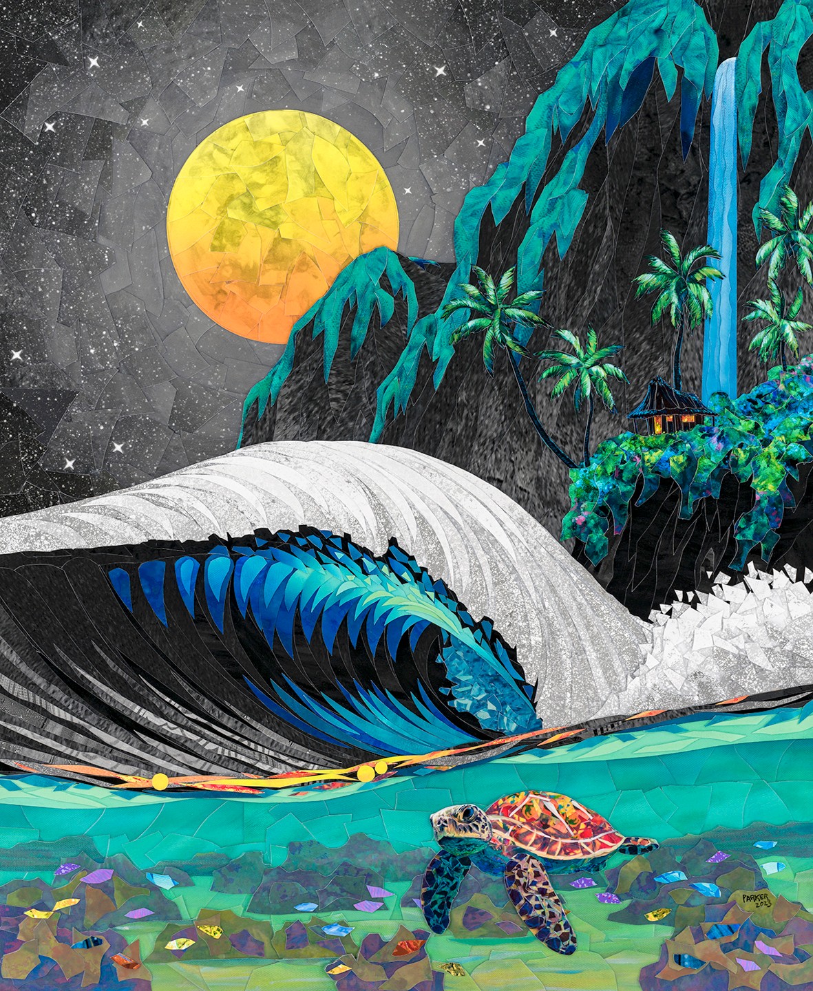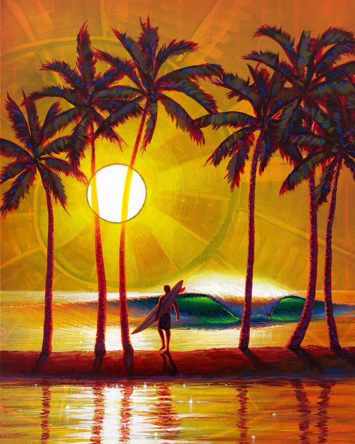 My creative focus is on creating “Fantaseascapes” influenced by the beautiful tropical islands around the world, especially Hawaii where I currently reside. When I create a piece of art, it comes from a feeling, an emotion, an experience… and then I capture that in vivid colors and compositions. I live on Maui, surf its waters, hike its mountains, and play in its waterfalls, giving me endless inspiration to express my experiences through art.