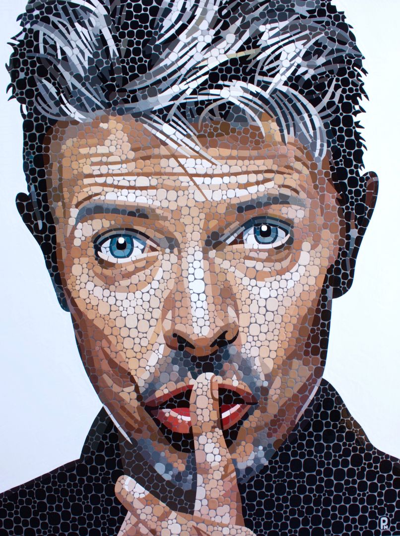 My art is very unique due to the technique and materials I use. The paintings are created using gloss paint and sometimes acrylic spray paint on aluminium sheets. The portraits are made up of thousands of dots painted with a fine brush.