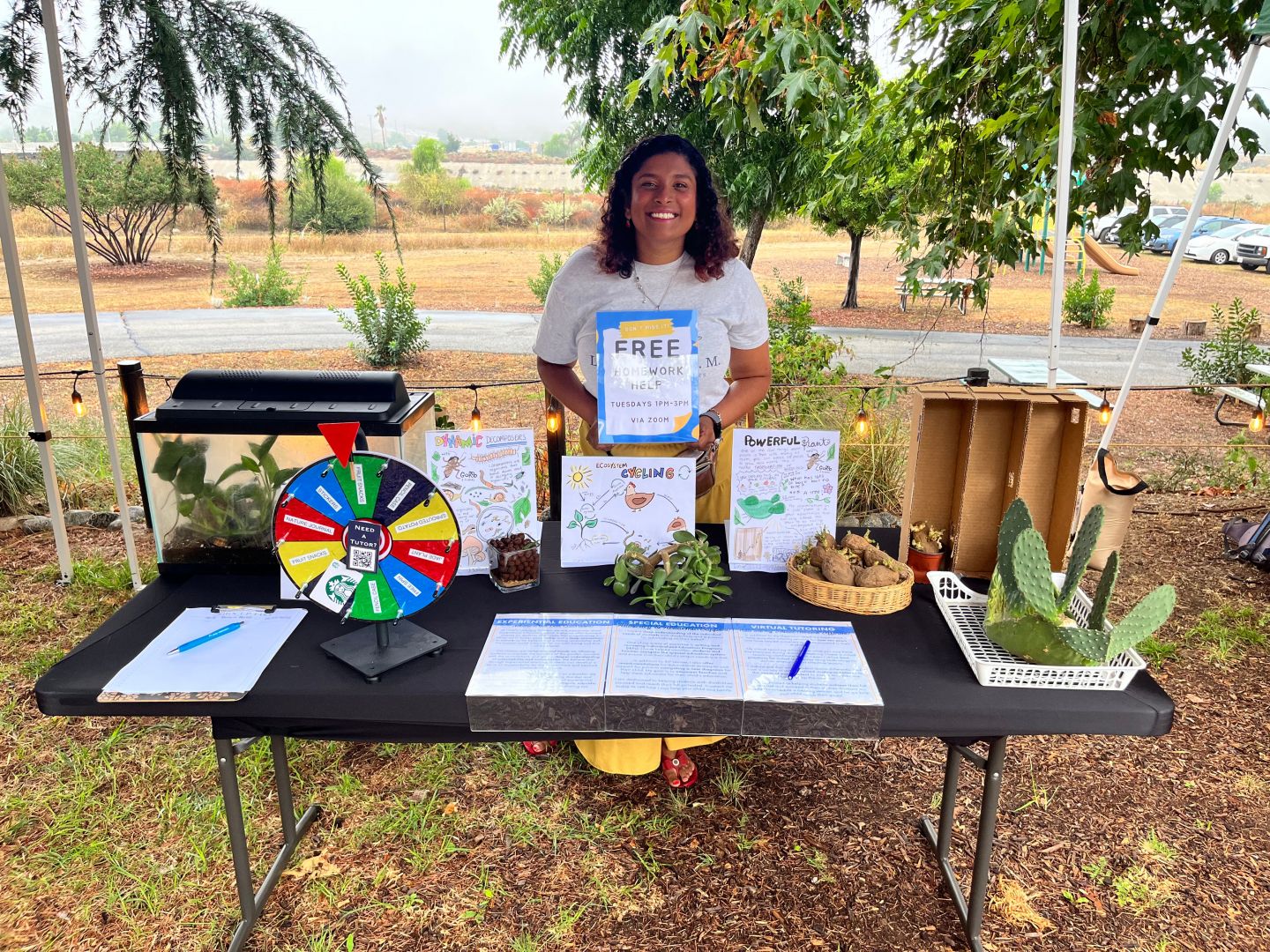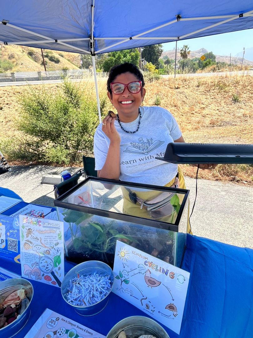I paid for a few Instagram ads, posted in some local Facebook groups, and got involved in community events. I kept thinking about ways to continue doing things I enjoyed while supporting my business. This is when I started my talking tables – an opportunity to connect with community members and show them what I am good at – teaching science. Each table I have done so far has been centered around a theme (Dynamic Decomposers, Powerful Plants, Spooky Science). Community members of all ages can swing by my table to learn something new in under 5 minutes. Each lesson comes with a personalized coloring sheet that they can use to review what they learned at my table.