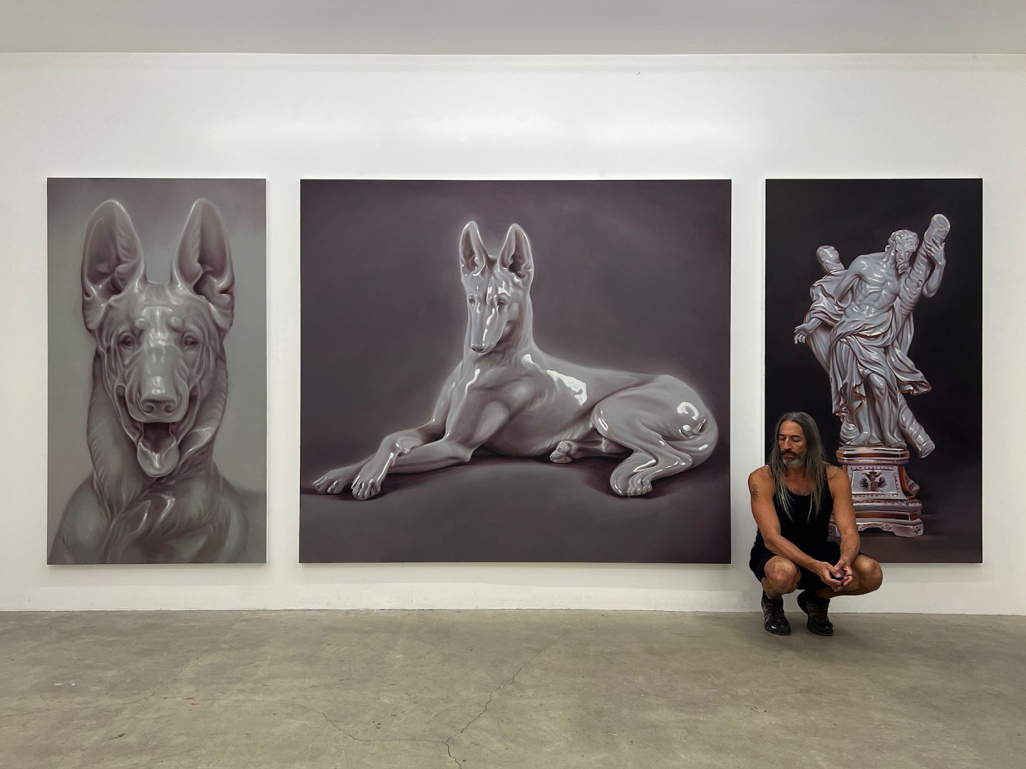 I’m often told that I am a skillful or talented painter and I always find this to be a bit inaccurate or even undermining. I really don’t think that I have any special talent or skill. I think that I make good decisions about the projects that I work on and the marks that I make. I’m practiced enough to know what to keep and what to scrap in a work. I have learned to not get too precious or sentimental about the work, If something sucks I’ll scrap it, paint over it or destroy it completely. An art practice is a frustrating thing. The work happens in private, over countless hours and involves lots and lots of failure. What leaves the studio is only what remains presentable and the final object hides this massive struggle. I have learned over the years that this struggle is in fact the practice – the final work, if it’s any good at all is always a miracle.