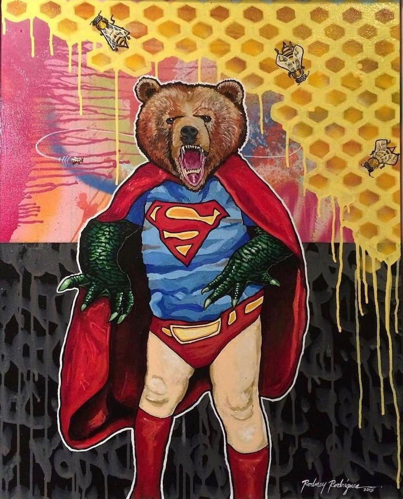 My current works of art incorporate various elements such as; graffiti, character illustration, street flavor and strategically placed paint splatters. The splatters provides movement and energy to the pieces. My signature characters give off that graffiti vibe with oversized heads, hands and sneakers/shoes. I inspire to be a visual story teller for the audience/collector. The titles to my pieces are simply an introduction to your imagination. Inspirations are many: Ron English, David Choe, George Condo, Kaws and Dragon76 just to name a few.