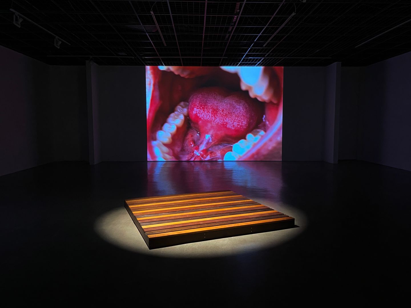 In the last ten years of my practice I have explored so many different bodies of work, and each new step seems to go in a direction that I hadn’t predicted. It is clear to me that experimentation or “zigzagging” is at the core of my practice, and I believe that many people see and appreciate that. My thesis show “EAT YOU” is a good example. After arriving in the US, I began re-exploring Oswald de Andrade’s “Anthropophagous Manifesto” (1928). This text is a milestone for Brazilian and Latin-American art, and it investigates relations between Brazilian identity and coloniality, while encouraging the subversion of the colonial order through the act of eating, digesting, and regurgitating the colonizer’s culture. Each piece of my exhibition used a different material and a different part of the body (mouth, voice, face, skin, torso), in a process of dismemberment or perhaps self-cannibalizing. While the works were very different from each other, I believe they formed one cohesive body. The process was to think of the works as a system, or a constellation, where each part is vital to the ensemble. The key is to have each work relate and inform the others, while preserving autonomy and independence from the group. One faculty member mentioned having a feeling of “schizophrenia” in the show, in the sense that each work seemed to have been made by a different artist. I thought that comment was spot-on.