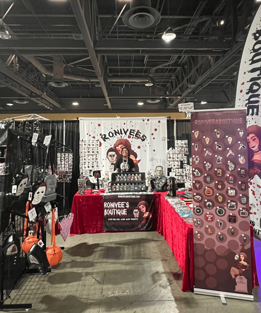 When I lost my job to Covid I focused on applying for events and hoping they’d book me. I was still new, my products were still very little designs. My set up was as not too professional. I was still learning the ropes. I saved all my money and paid for spots and different events that I got accepted to. My biggest event and such a dream come true was getting approved to vend at the la county fair. My uncle and his wife own CBM realty, they sponsored me with half of the down payment and I was able to book my spot. Best decision of my life. I started getting noticed by people and event planners. So I took a chance and applied to bigger cons. It was very overwhelming and I was so scared but I did it. As of today I vend at so many HUGE Horror Conventions. I’ve also been accepted to multiple out of state events that I have yet to try. It was never easy. I work my butt off to get to where I am today. I have definitely made a name for myself, and the best part my son is my biggest supporter and my biggest inspiration.