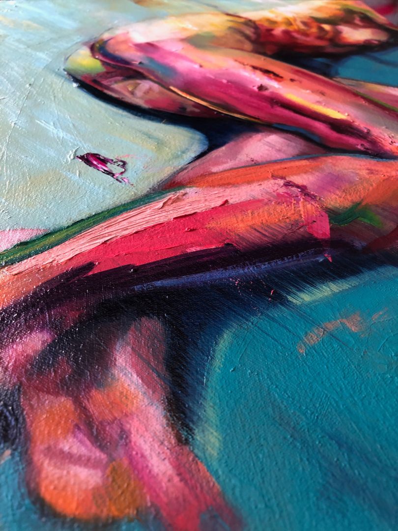 Using oil and spray paint I do portrait and figurative works. I paint in a loose, abstract and colourful style to convey a feeling and atmosphere to the people I paint. I guess I’m proud of how much I have exhibited across the world, in places like New York, Amsterdam and Cologne. I am also proud of the fact that I have put together two very successful solo shows in my home city, London. How I got to this point professionally… I’m not sure. Hopefully due to hard work, discipline and being nice and helpful to those I met along the way. It’s not easy, no, but it is fun. Of course there are many times, where you question your own skill, self doubt, wondering why opportunities come to others and not yourself, financial concerns etc, but you have to focus on going forward, and making sure you are working on your practice. Not everything has to be a piece that you end up exhibiting, but I feel you should always be working on your practice and developing as an artist. This is the only way to learn and improve. I’d like my work to trigger a feeling or memory that you recognise within the person looking at it. I like to initiate connections and to remind people of emotional place… to reflect on that time and to question what has be learnt or discovered.