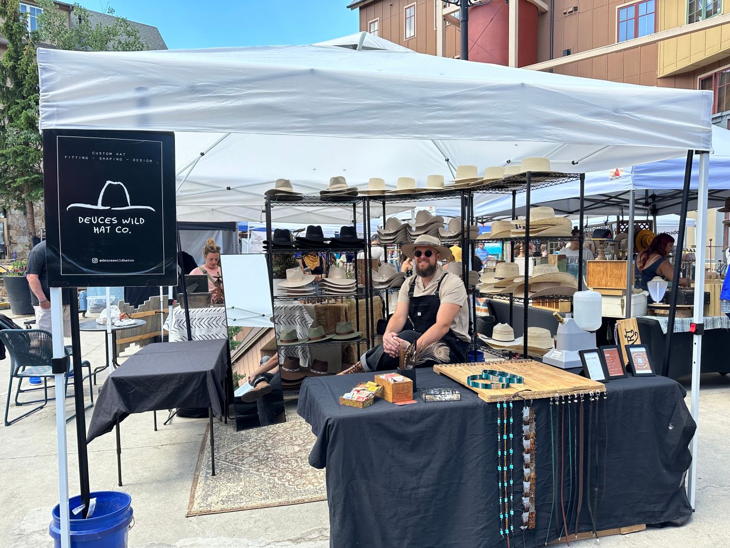 As a career barman in Breckenridge for the last 12 years I’ve realized for awhile now that I needed an exit strategy from the service industry. Given the cost of living and observing how other long term residents created longevity and carved out a livelihood here I realized that many of them found success starting their own businesses. I wanted to offer a product and service that hadn’t yet been offered here while allowing me to tap into my creative abilities ~ shaping and creating hats resonated heavily with that. After exploring the process on YouTube I realized that a mentor would be my next move. After working with my mentor for a few months I felt it was time to launch my own hat shaping brand. I wanted to launch as an experience based event pop up brand. By doing so I knew I could keep the overhead low (zero to minimal rent) and still create exposure… potentially more than that of having a single location for the business. The model is proving successful and every day and new event presents opportunity to learn and build efficiency in regards to our operating procedures.