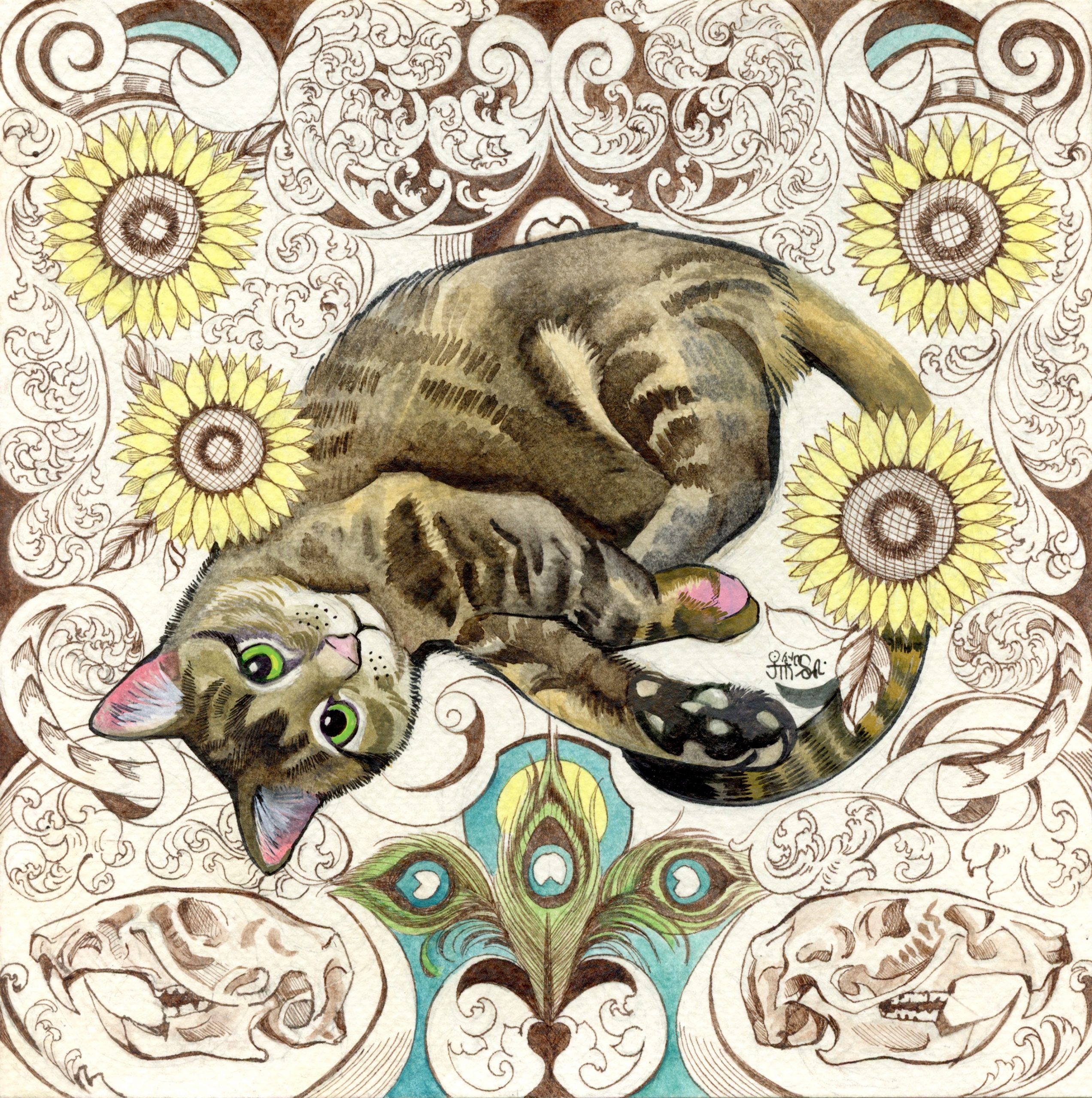 Much of what inspires me is unusual and old-fashioned, so I’ve found that my work caters to a niche audience. I think part of being an artist is to create things that are different to what is already out there and offer a unique perspective. Having a personal style is something that I’ve always prided myself in, but it’s also been extremely challenging to be marketable. There are trends, especially now in 2025, that everyone tries to keep up with and end up striving for similar themes and styles. Most of the time, I’ve found that people don’t want something different. They want something cute, familiar, and relatable; something to take the edge off and ease their stress in a world that has become uncertain and difficult to navigate. Although, it is important for an artist to never lose sight of their identity, it is also important to deviate from what you’re comfortable with and have the ability to be flexible in order to reflect what society needs. Art is about nurturing and honing the skills to effectively bring out your vision. As someone who has been doing this for the past 15 years, remaining passionate can be really challenging at times, but I believe the most important thing is to stay focused and be genuine about your craft. I have spent a significant portion of my time with pen and ink, as it is a medium I have chosen to specialize in. Although, it isn’t as eye-catching or popular as a colorful painting, I have chosen to stick with it and have become quite good at it. Many people have been asking me over the past couple years about having my artwork as tattoos and it made me realize that my art can translate quite well into that realm. Thus, I have been considering that to be the next big step in my career. My art has changed a lot over the years and I expect it to continue to change as I grow. I think the worst thing to be as an artist is to be stagnant.