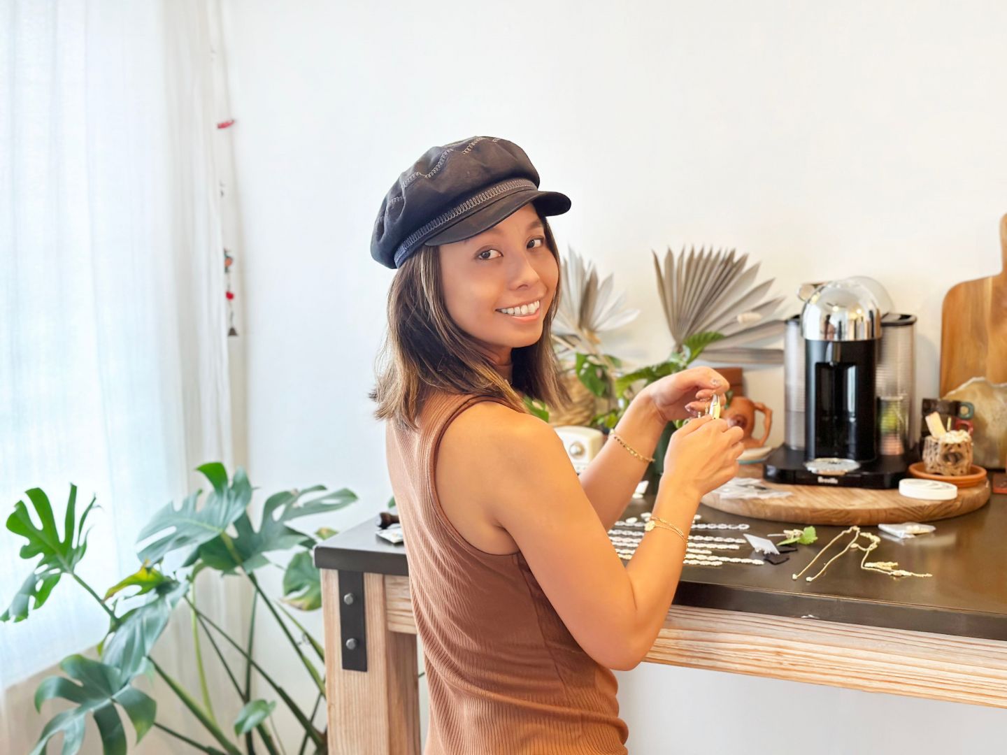 I want to give a shoutout to my husband, family and friends. They are there for me when I need help with my pop-up, events, website, photoshoot and etc. This is my small business so I am a one person who makes/pack your jewelry, ships it out, updates the websites, and answers your emails so there are times when things can get overwhelming. My friends have helped me modeled my jewelry, gave me ideas on contents and hosted events for seasonal pop-ups. I also want to thank my friend Paulina Rothe who owns a cute little eco-friendly boutique in Laguna Beach called “Shop 7 Roots.” She’s been carrying my jewelry for almost four years now and also carries local handmade brands and artisans.