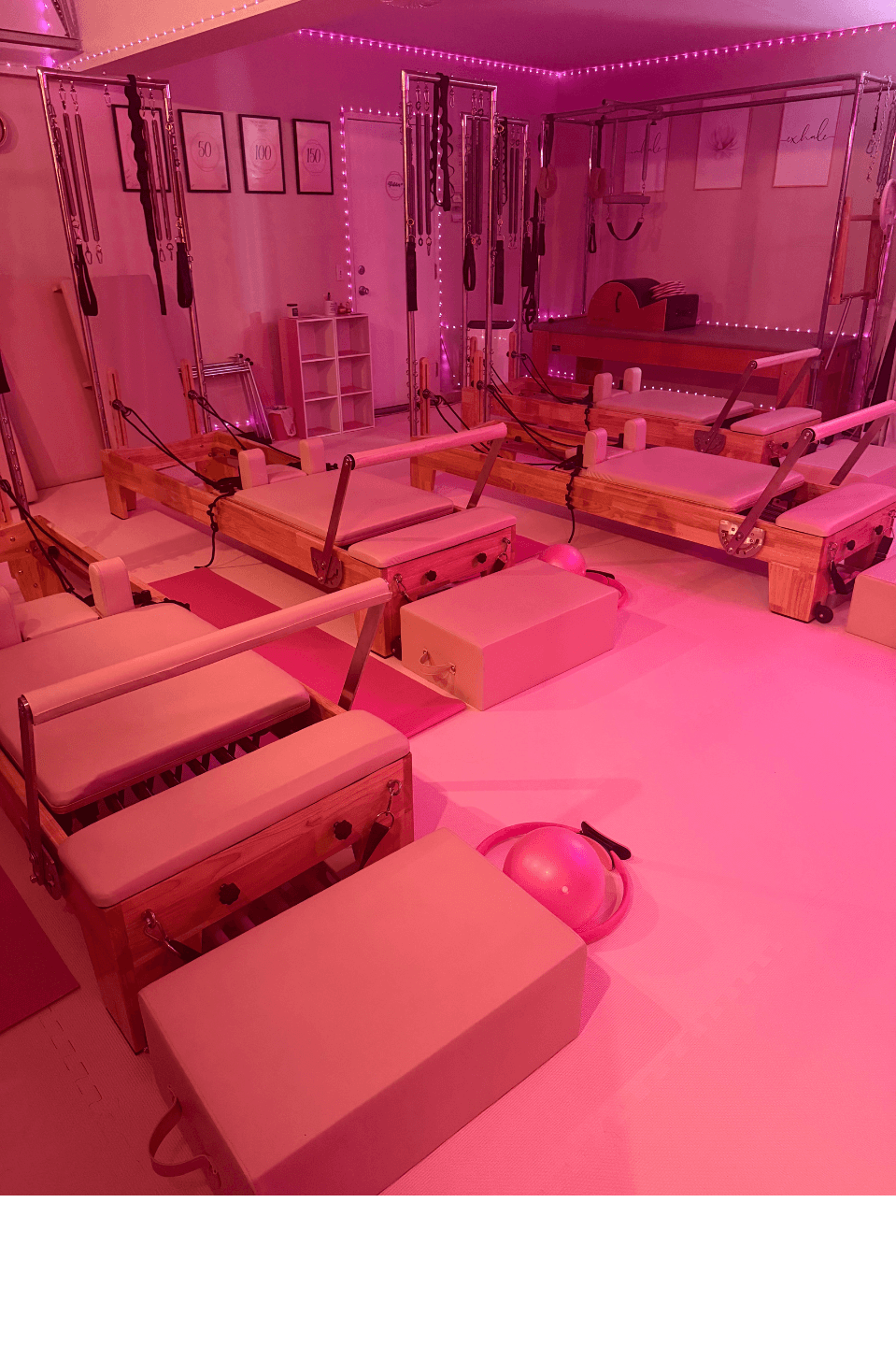 This slowly turned into having friends book time slots to come over so I could practice teaching them. After I got certified, people still wanted to keep practicing Pilates with me. They loved it so much that they wanted to share Pilates with their family and friends, but I didn’t have room without getting another reformer or two…so that’s exactly what I did!
