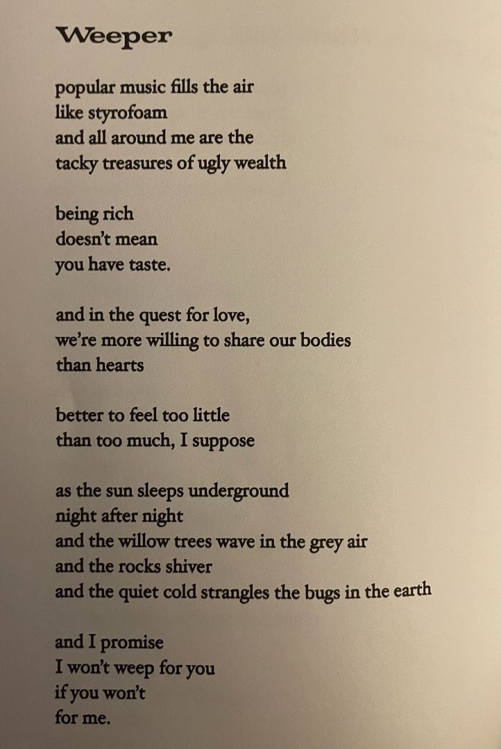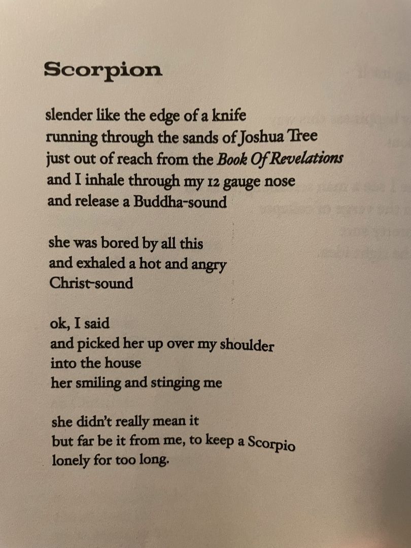 I feel very grateful for the people in my life that have been supportive or have given me insights when I found myself lost. My mother has always been a fierce advocate for me following my own way regardless of what the world is doing. My friend Leobart who runs the Outlaw Poets account on IG has been an incredible support and a great writer himself. And everyone who reaches out to me, follows what I’m doing, reads my books, and enjoys my art and music. Every ounce of their support is a currency that keeps me in motion to create.