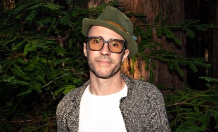 Chris Violette: floral shirt over green backdrop and denim shirt next to window (3 studio photos)