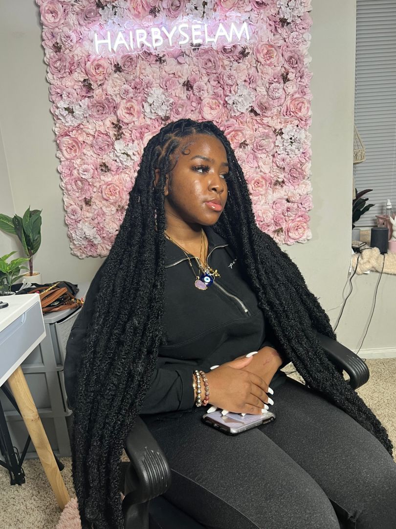 Honestly before I moved to Maryland from Philadelphia, becoming a braider was never a thought in my mind. I always enjoyed doing hair, as I was the other braider in the family besides my mother. I would always try to do my mom’s hair, or other people in the family. But surprisingly, I didn’t want to pursue it. It was only because I dreamed of becoming a singer at the time, but I was also very young. I’m 16, still young, but a small experience changed my passion and future. When I was about 12, I started doing my own hair out of curiosity and also because I believed the hairstyles my mother was doing on me were childish ( sorry mom). After my first time I just kept up with it, and was always trying new styles on me such as box braids and cornrows. Then when I started my freshman year of highschool in Maryland, a girl came up to me and told me she liked my hair. She then proceeded to ask who did it, and was shocked when I responded “me”. It was the first time someone complimented my hair, and asked if I could do hers. I charged her only $50 to do her hair, but it wasn’t for the money, it was something I genuinely wanted to do. When I finished her hair, I realized how I loved to see the outcome of MY work and seeing other beautiful black girls feel confident in their skin. It only took me one time to realize what I wanted to do, and from there my business HairBySelam came along.