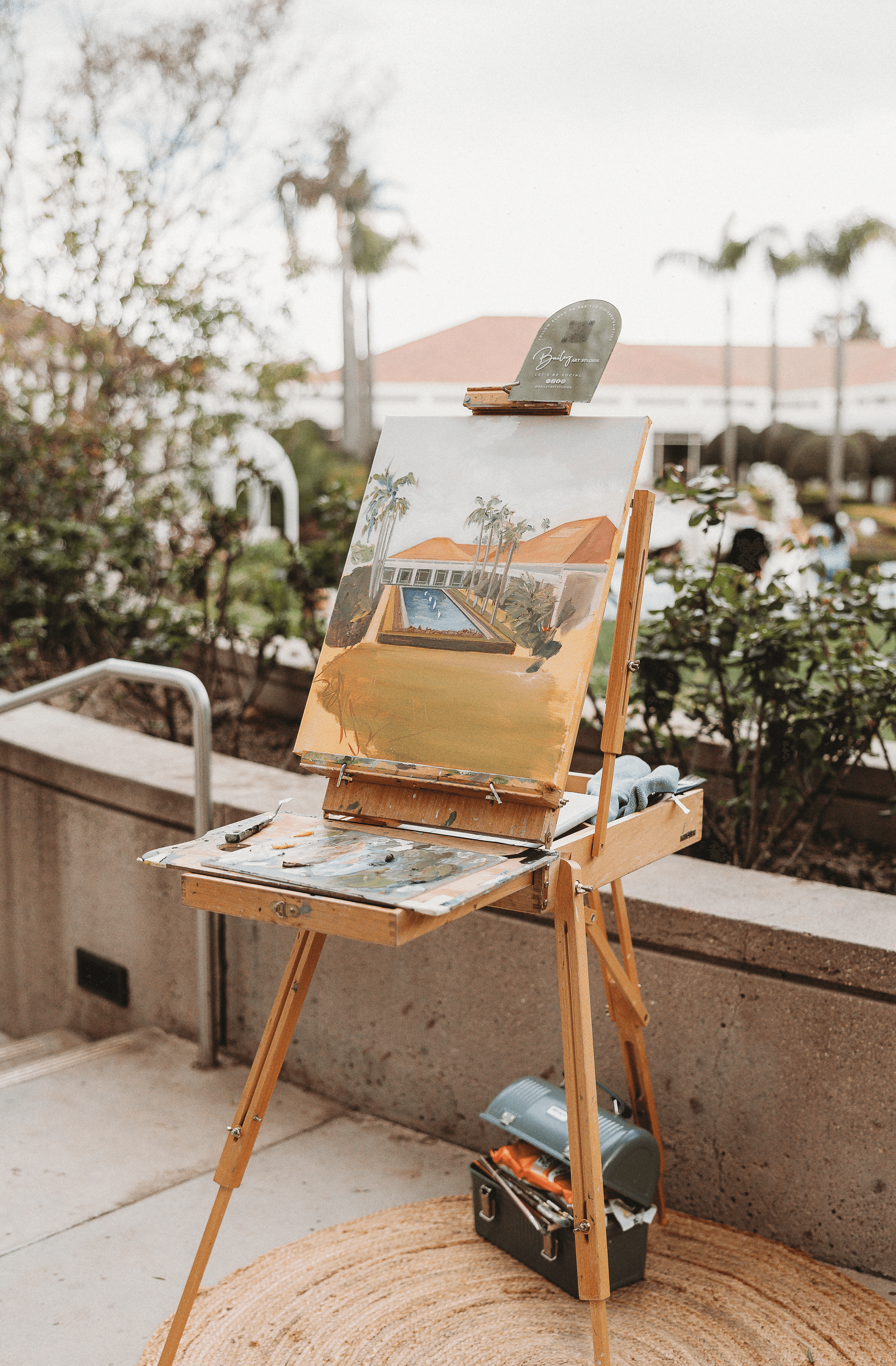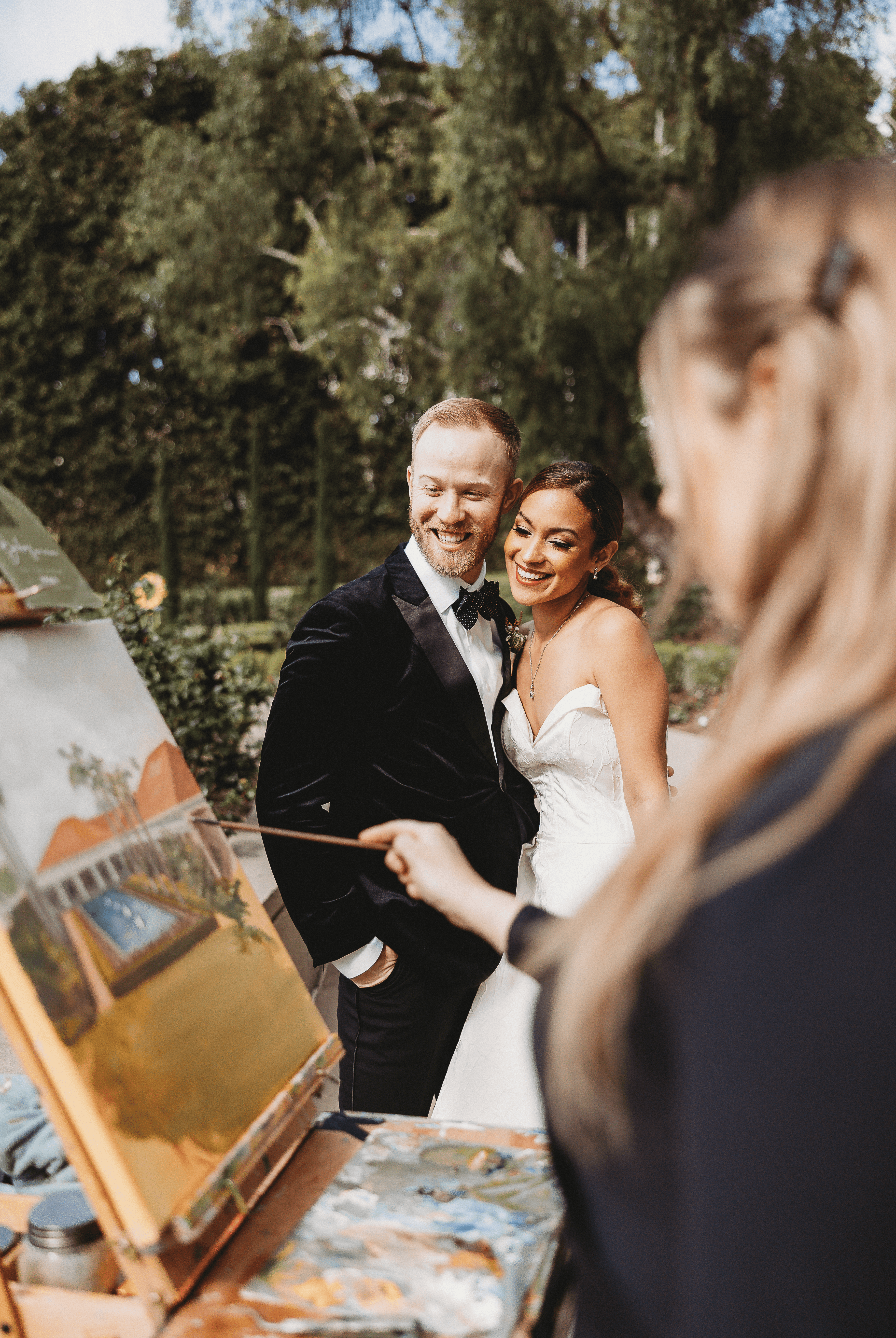 Any good artist will tell you that there is always more to learn. I look at a finished painting and I don’t see what others see, I see all of the struggles and obstacles I faced while creating it, and think of all of the ways I can improve next time. One of the most difficult parts of being a full time artist is presenting your work as if you are completely happy with it, despite the fact that one of the literal definitions of being an artist is never being satisfied or done with a piece. So much of being a successful artist is about controlling that narrative. It’s about insisting on what would make a good painting, and finding ways to explain that expertise and perspective to a non-artist audience. I have dozens of brides and grooms who have requested things that would simply kill a painting. Hundreds of guests for example, while that may work in a photo, too many figures in a painting reads like a battlefield scene to the eye. It’s these kind of decisions that separate the okay artists from the really good artists, but it can be difficult at times to convey that to a technology-driven world. In a time where teenagers are watching multiple YouTube videos at once, true artistry is understanding that art only begins when you approach from a “less is more” perspective. This encompasses so much of the process, from what colors you bring to live paint, to understanding where to position the figures in a painting, to having enough self control to not “overwork” a painting. There is so much thinking and analyzing that goes on behind the scenes in a painting, and I think that lesson is one that is never learned, it only ever evolves as you grow as an artist.