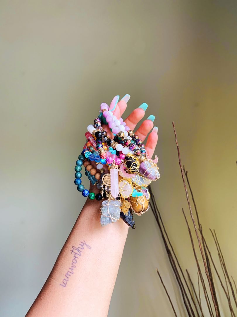 At this time I was also exploring my spirituality and holistic wellness and I felt really called to connect these experiences. I’ll never forget talking to my family about it and my mom and one of best friends gifting me $100 to get my first set of healing crystal beads to create jewelry with. I created from a place of sadness and stress until I began to feel light, free and joyous.