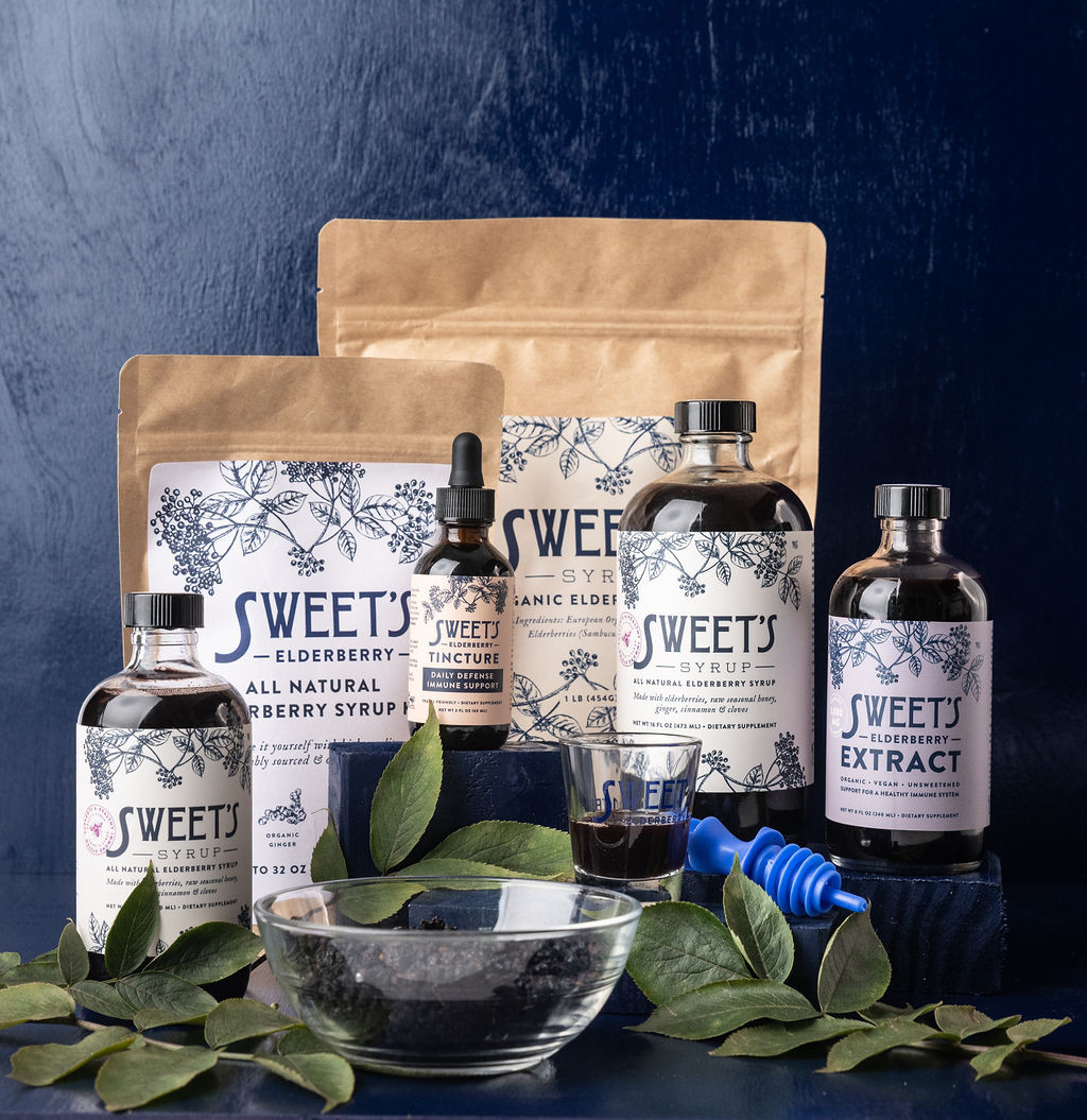 In a short time, Sweet’s Syrup catapulted from a kitchen creation sold among friends to a household name. Today, Sweet’s Elderberry’s range of products are handcrafted in a North Carolina commercial supplement kitchen and shipped to stores, pharmacies, restaurants, and homes across the United States.