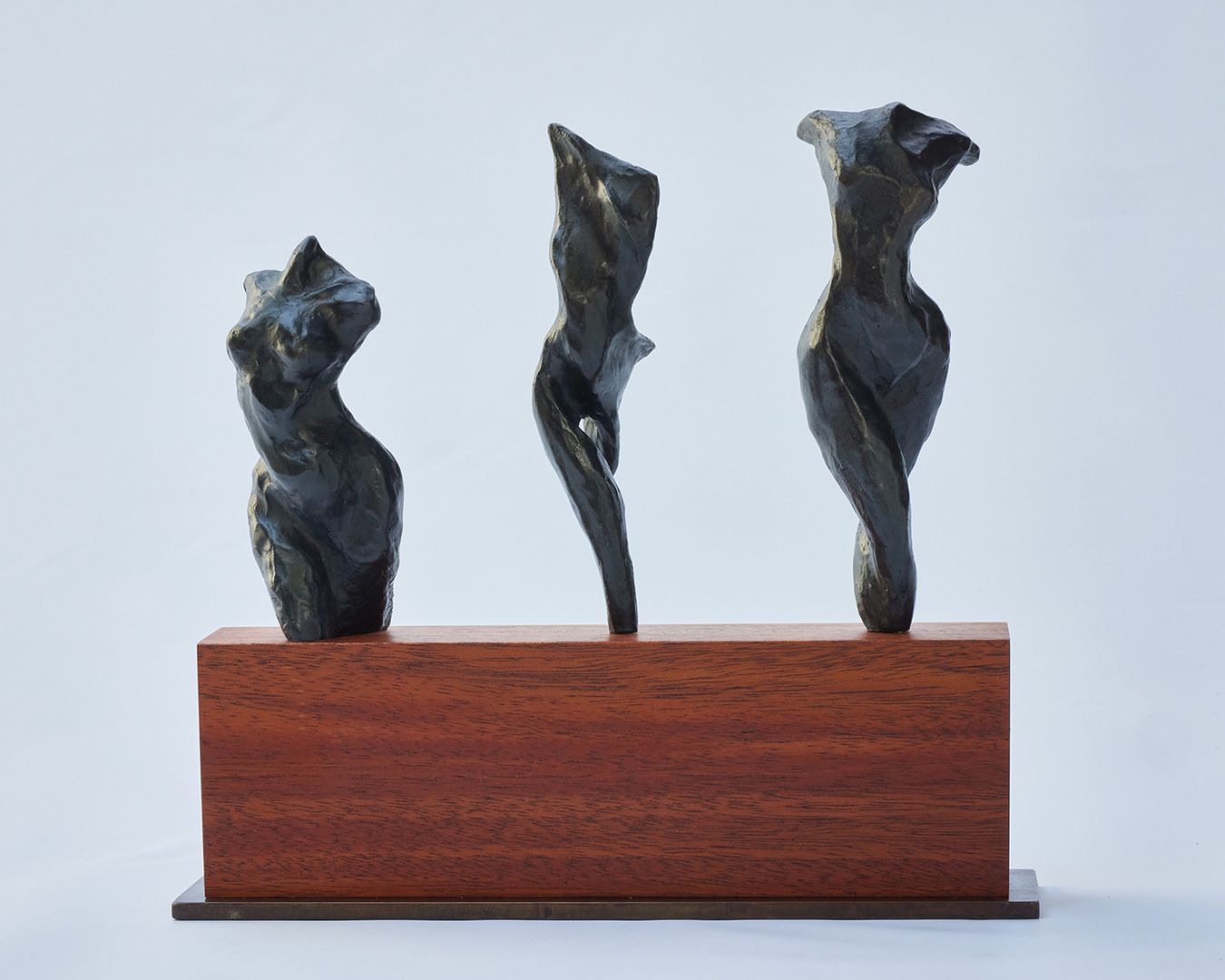 Recently I saw my first large commission, “Revolve”, a large, hand-forged, stainless steel wall sculpture for The Alamitos building in Long Beach, CA, installed in 2020 during Covid. The sculpture depicts three views of an abstracted female torso in rotation. It was five years in production to make and was my first experience in managing the fabrication of one of my own sculptures. It was a huge, terrifying leap from making small sculptures on my own to making a large sculpture for the public arena in a material that I had not actually worked with or even had the tools to work with before. There were many long anxious days and sleepless nights during the process, but my years of working on “Play-Doh” had taught me the value of teamwork- that anything was possible when you can find the right people to help you.