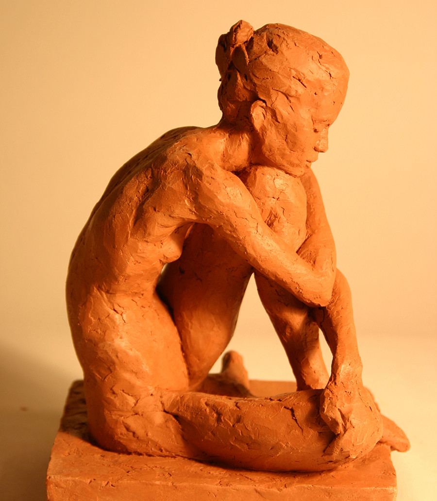 Working with clay came very naturally to me. I fell in love with clay from the first moment I had my hands in it. It has a density and flexibility that is not unlike the human body. It is almost like a living thing. I found I could work with it quickly- moving it easily to convey form and gesture spontaneously, much like doing quick gesture drawings with charcoal on paper. On the other hand, I could work the clay to a level of finish and surface detail that belies the nature of the spontaneous material, disguising the fact that it really is just an over-the-top mud pie.