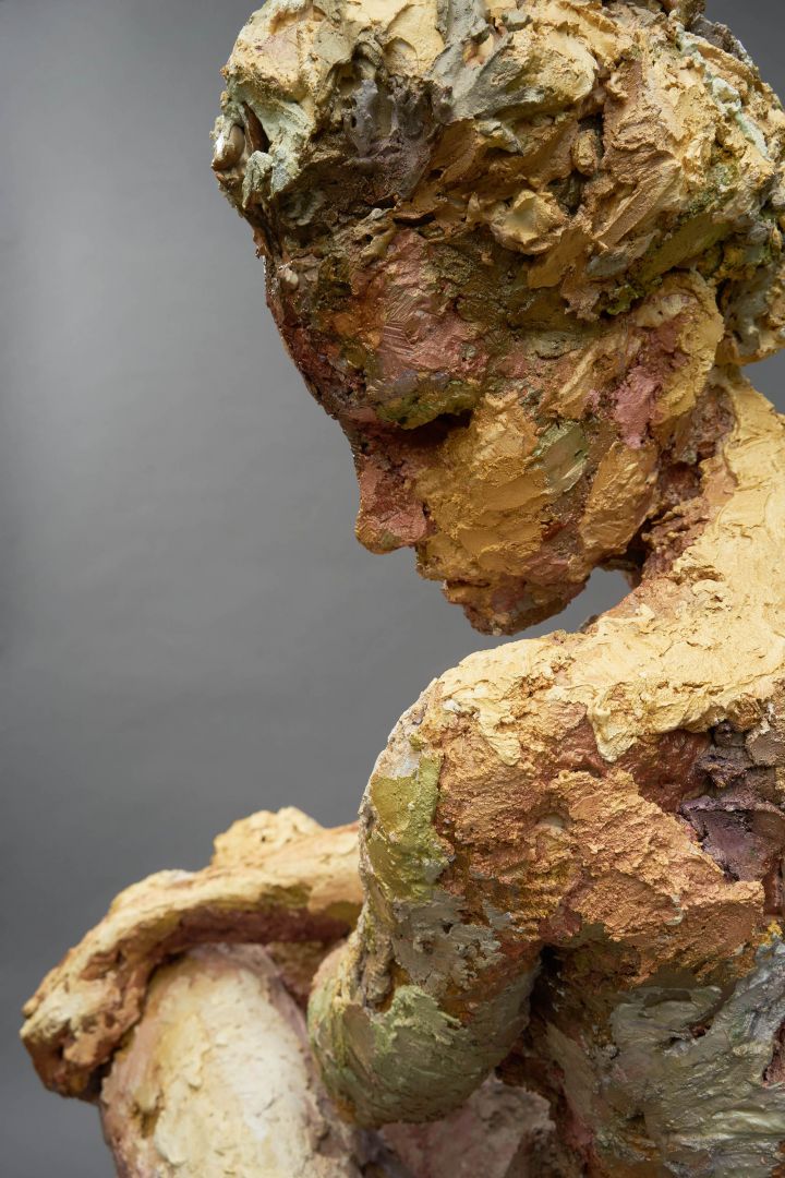 I try to let the medium I’m working with guide the direction of the work. The textures of the material and traces of the process used to shape it are always left to be seen as part of the finished work. For example, a sculpture made originally in clay and then cast from a mold into plaster can have a very different look from one that was made directly in plaster.