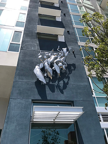 In 2015, I was invited to submit a proposal for a large outdoor work of art for a new construction project in the East Village area of Long Beach. I had never actually put together a proposal of this scope before, or actually designed a sculpture on that scale. I had no experience with budgeting, engineering, or scheduling. I was truly surprised to win the commission for a large, forged stainless-steel wall sculpture. I was fortunate to have had the “Play-Doh” experience so at least I had an idea of how it could work. I also now had contacts to draw on.