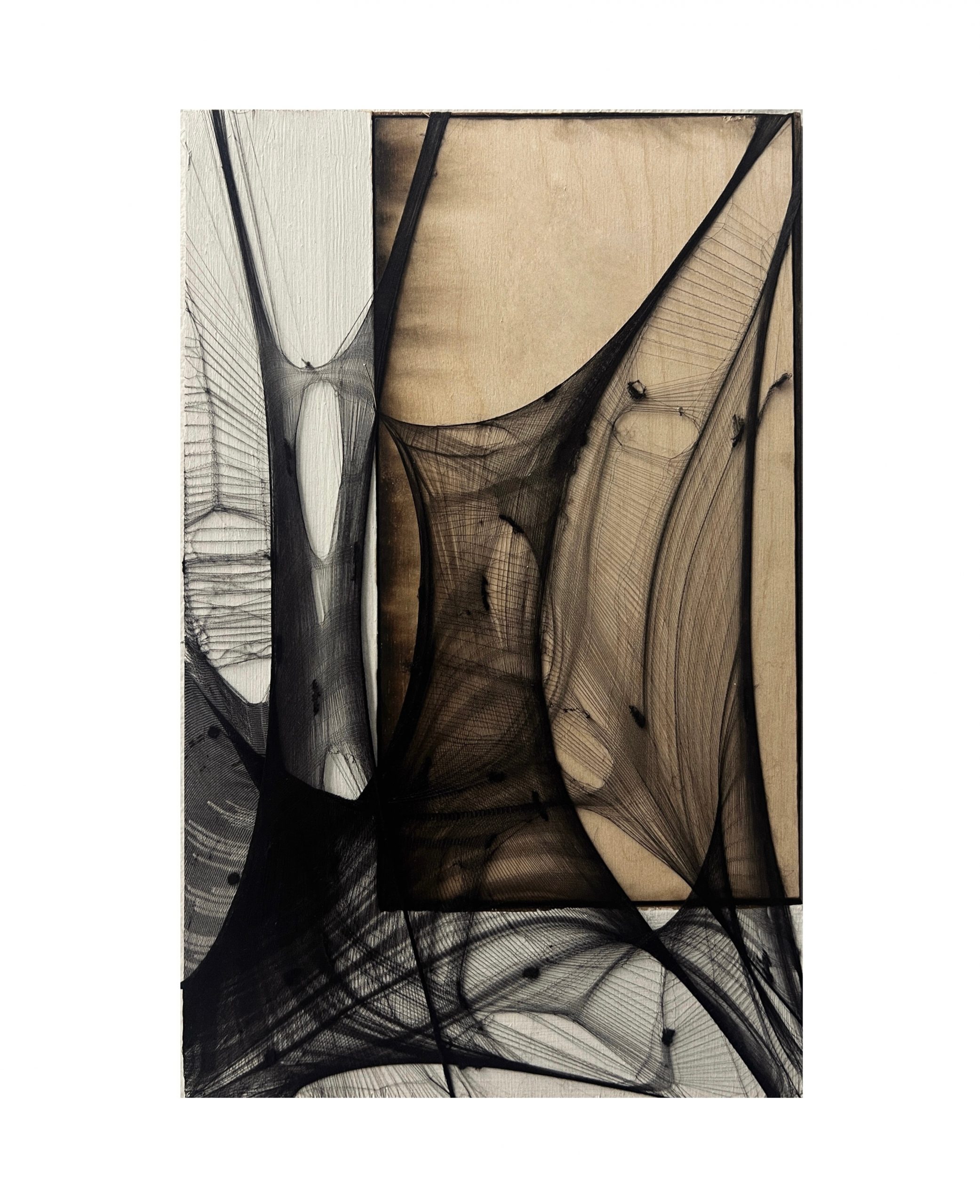 Fabric is my primary medium, symbolizing a “second skin” and a vessel for emotional experience. Through processes of stretching, cutting, knotting, and burning the fabric—then fixing it in place with nails—I create “beautiful scars.” The sense of rupture present in my work embodies an internal tension and aesthetic allure. It is through this ritual of self-tearing and reconstitution that I seek to create a new method of self-healing.