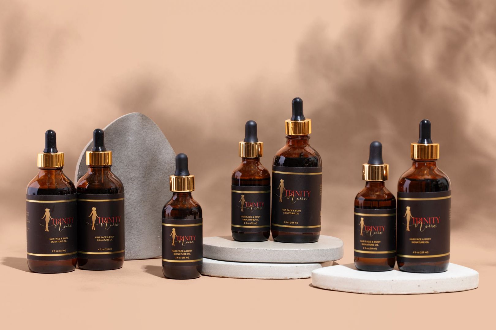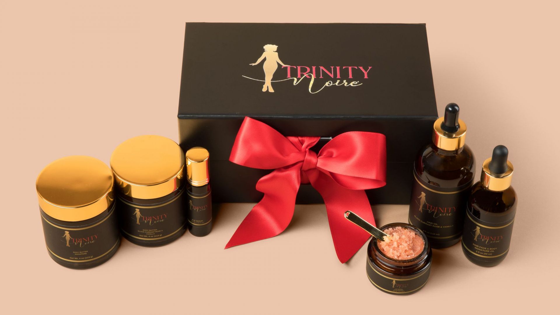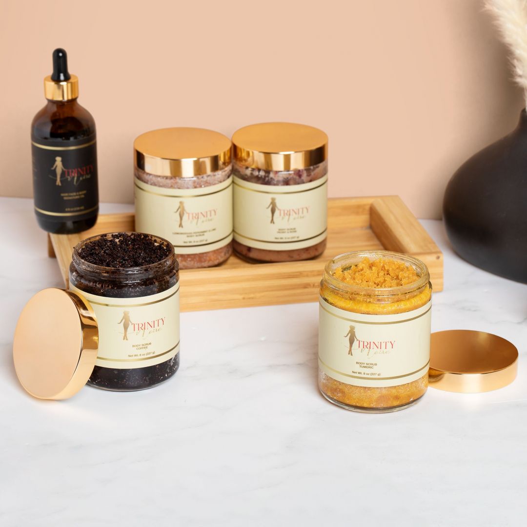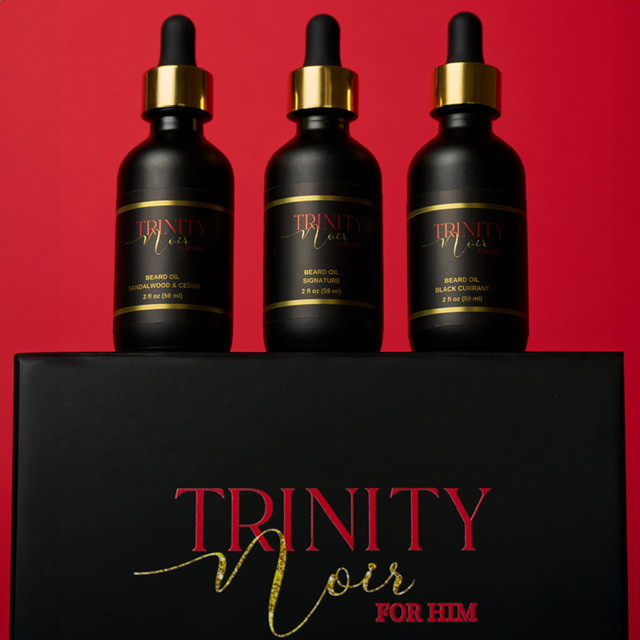 What sets Trinity Noire’ and Trinity Noir For Him apart from others is we are more than a brand, we are an experience. From the moment you see the logo, table display, or the packaging, it draws you in and makes you want feel and smell each and every product. Once you try any of the Trinity Noire’ or Trinity Noir For Him products, your skin will never feel softer or more hydrated.