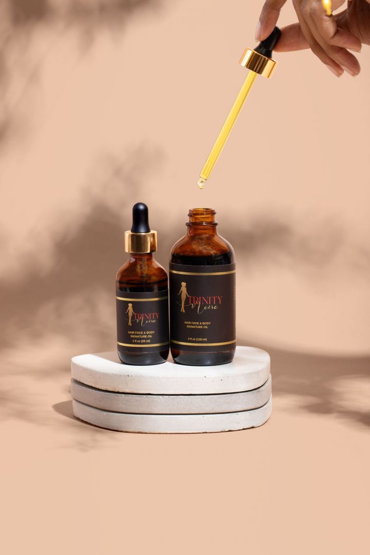The thought behind starting Trinity Noire’ was a process. I recently changed the way I ate and eliminated meat and processed food. I also did the big chop and was growing my natural hair. I was feeling amazing yet unsatisfied with skincare as a whole. I wanted a more natural moisturizer for my skin and was tired of buying products that had ingredients I never heard of. I started researching natural plant based oils and began testing on myself. I never thought I would create a brand when I was testing different oils, It wasn’t until I saw the amazing results on my skin that I started applying those same oils to my hair. I started giving out samples, of what is now known as my Signature Oil, to family, colleagues and friends. The feedback blew my mind and let me know I was on to something. Although I didn’t think I was creating a brand or a business just yet, I named my oil “Goddess Oil” and started putting my newly created formula in bottles.