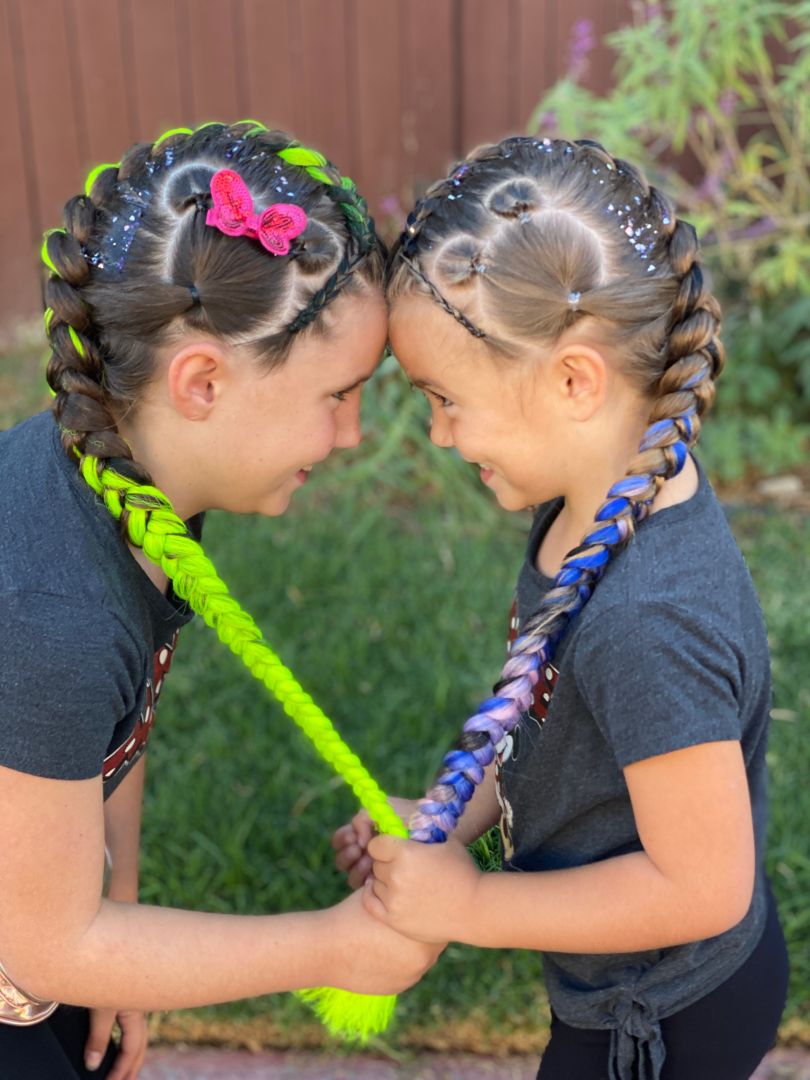 My art is ever evolving which makes me so happy. P and G parties is a combination of my two loves… braiding and dance but that is just the baseline. I have always loved to entertain. Being on stage (any stage) is my happy place. I have found throughout my many years of teaching kids that they are by far the best audience. There is something about taking a room full of children on an educational and confidence building journey without them even realizing it because they are having so much fun. A thank you, a hug at the end of class, the look they give themselves in the mirror when they feel like a magical unicorn or just a smile as they say goodbye is everything. It makes all of the hard work worth it. That being said, just because I love what I do doesn’t mean it is always easy. Building a business from scratch without a business model to follow is no picnic. I started really building my business right after my divorce. It was a scary time because I had been a stay at home mom, teaching dance only a few hours a week, for years. I suddenly found myself a single parent with no outside help. I decided then and there that I could build a business that made me happy, left me able to be a mom to my girls and show them that they can do anything with hard work and dedication. Being a one woman show has left me exhausted mentally and physically many nights but the rewards outweigh the challenges.