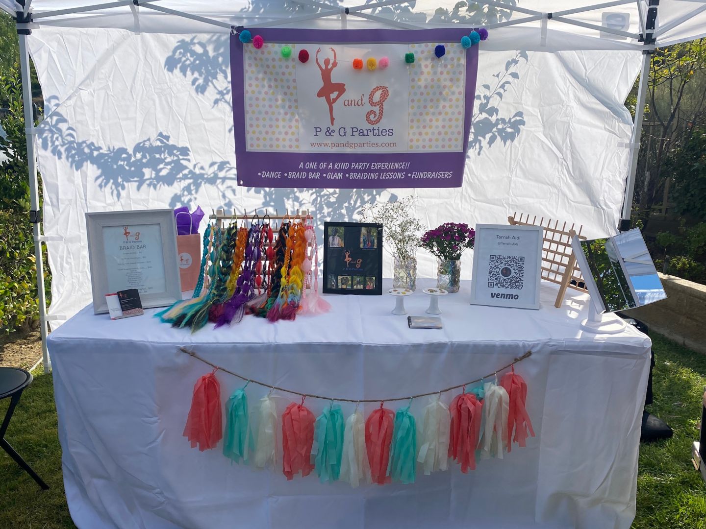 From a very young age I always knew that I wanted to create or be a part of art. I grew up as a competitive dancer and have followed that career path throughout my life. I have danced professionally and am still a teacher and choreographer. Come to think of it, I have actually never had a job I didn’t love. Sharing my passion for dance is one of my greatest joys. Then, when my daughter was born with amazing hair my love for braiding began. She would grow to challenge me to learn and create fun new styles and that is what brought me to create P and G Parties and P and G Hairstyles. A place where I can spread joy, combine my two loves and have a blast doing it.