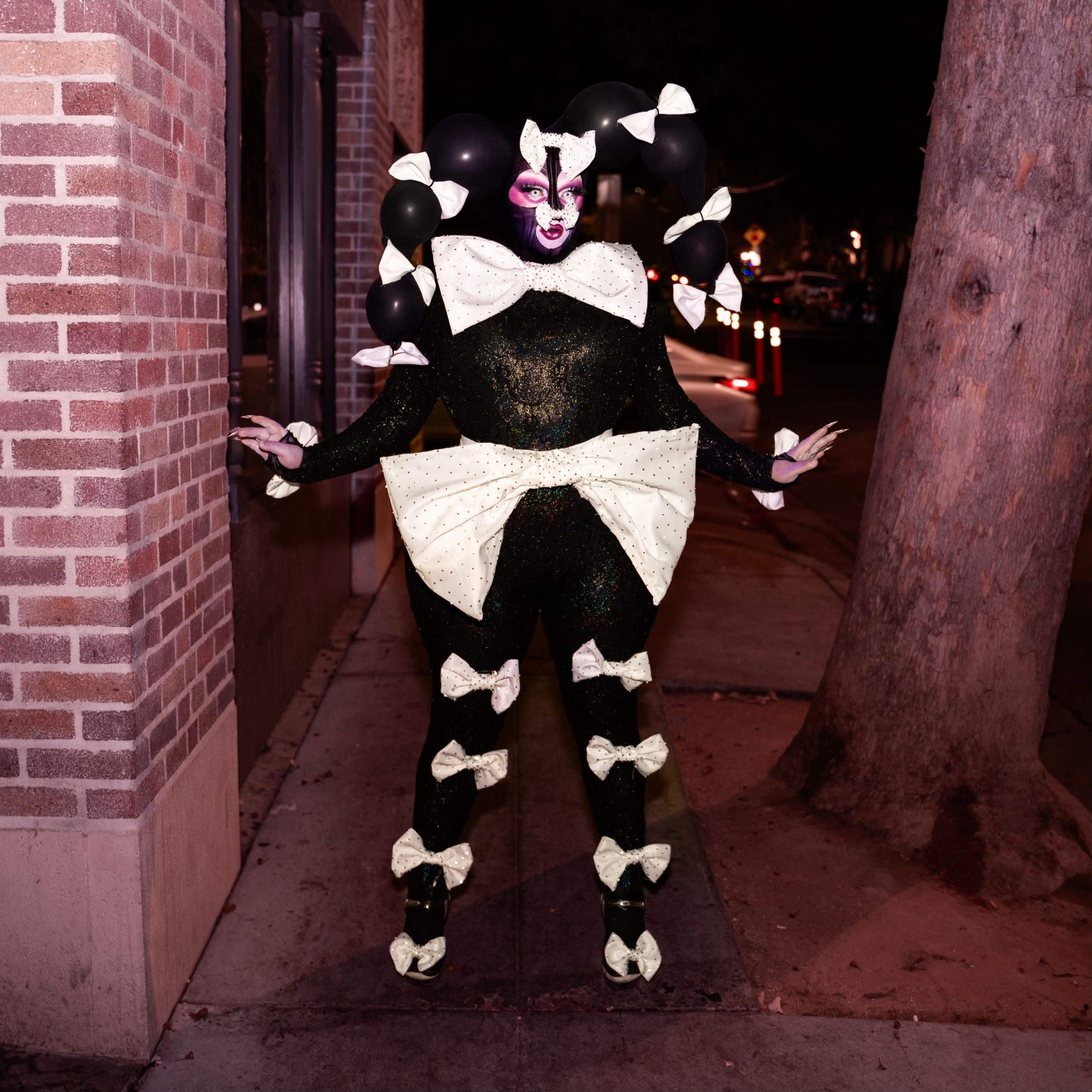 I am genuinely just a clown. I say it jokingly but I juggle, I swallow swords, I can ride a unicycle, and can even do balloon animals ! All in all , I’m just an entertainer who loves to merge the boundaries between horror and glamour. I’m the most proud of the amazing drag family that I have built for myself. My drag children and I have truly taken over every region that we’re from and just continue to work the absolute hardest to build our family legacy. I’m so proud to be surrounded by such impeccable artists who I love and admire, while also pushing myself to continue to be better. I’m excited to see where our family goes, and see our names engraved into the legacy that is LA Drag. I’m also proud of the fact that all my drag is all done by me, I design and make every single look I do from scratch. I’ve accomplished so much in these short years of starting drag, Im an Emmy Award Winner, Best Drag Performance Nominee, and next up ? Maybe the next winner of the great British bake off ? WHO KNOWS!