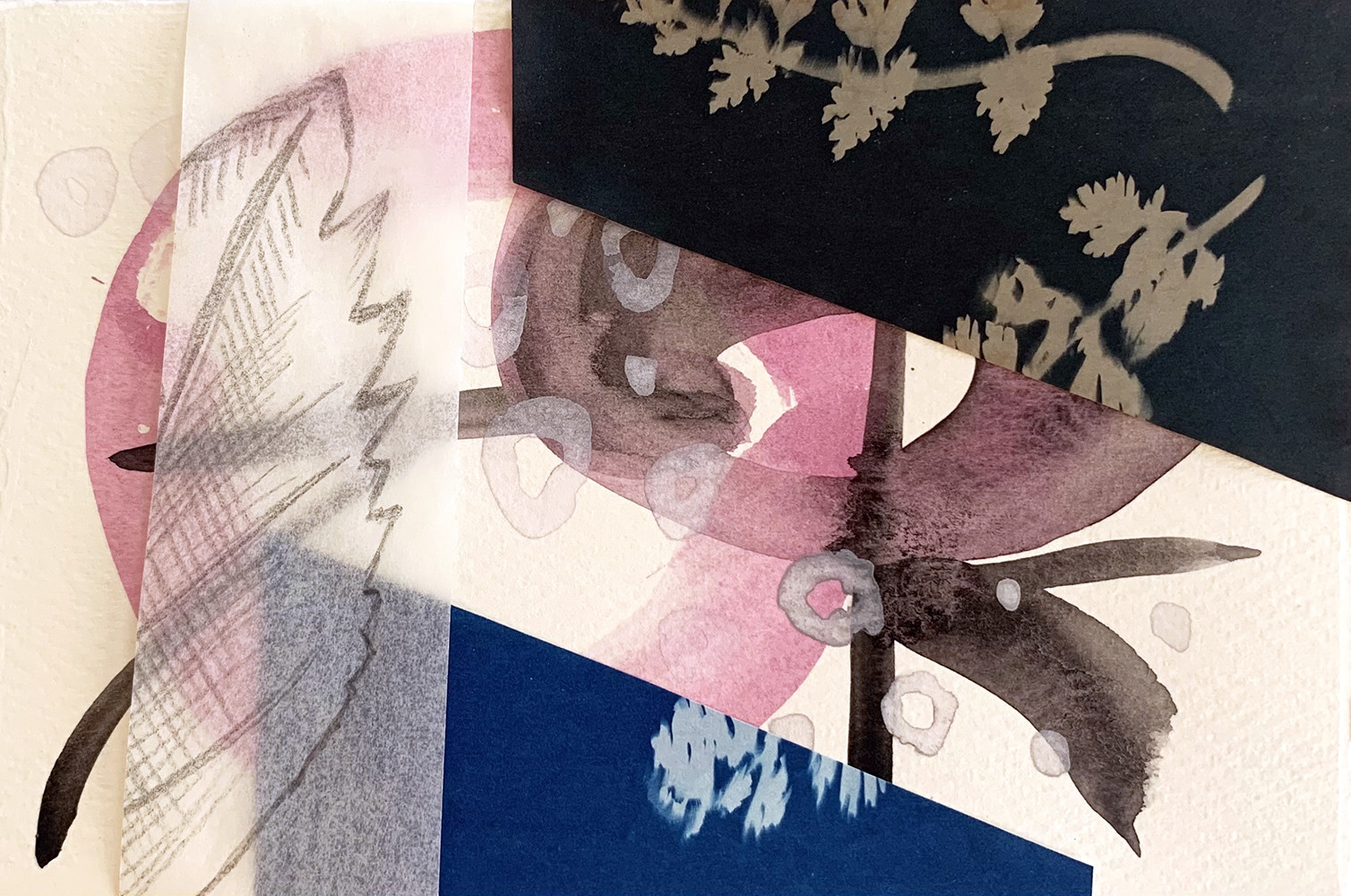 My art is a combination of drawing, painting, fiber art, collage, printmaking, and experimental photography. Rather than choosing one medium, I prefer to make work based on concept and material driven exploration of ideas to abstract personal history and fictional narratives. Sometimes the fictional narrative comes from literature, sometimes it comes from the stories families tell, or conceal. I love stories and memories. Memory is so slippery, you never really know how factual family histories are by the time they’ve made it to you, especially if passed down a few generations. That’s what I really enjoy most, exploring memory and connection, and questions of how our past experiences or even those experiences passed down the generations affect us now. For me, making art in this way is like a ritual or communion.