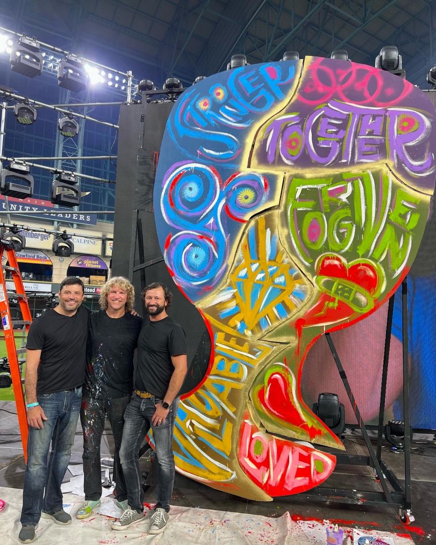 For example; I have recently designed a few books, painted live at a corporate event, a fundraiser, and a Christmas Eve service, created commissioned paintings and assemblages, completed mural and banner projects for a few cities, designed and illustrated the identity and product line for a company, designed and painted a public art sculpture, created a 8 ft. x 12 ft. Kintsugi art piece at a stadium event in Houston in front of 25,000, and completed the design and remodel of an event space: murals, patio, gate and bar design, build-outs, lighting, and branding.
