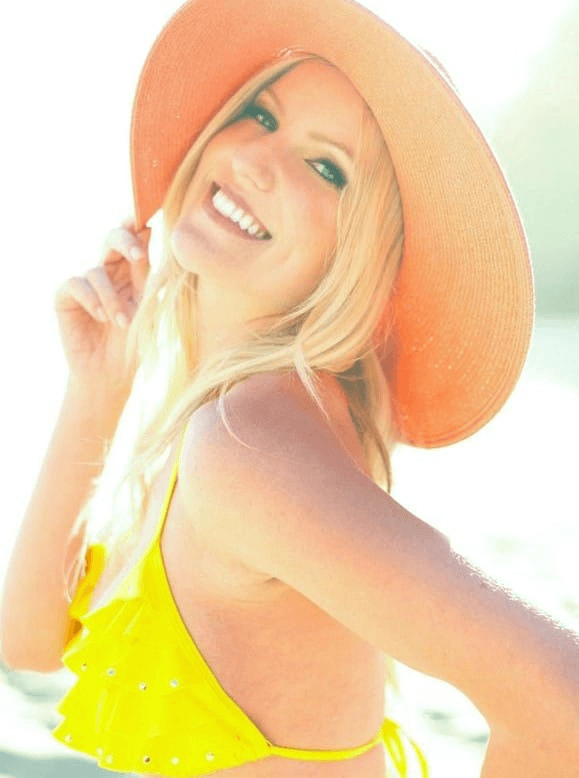 Natalie’s Headshot by Jamie Luca. Yellow bikini shot by Adrian Jon Photography.