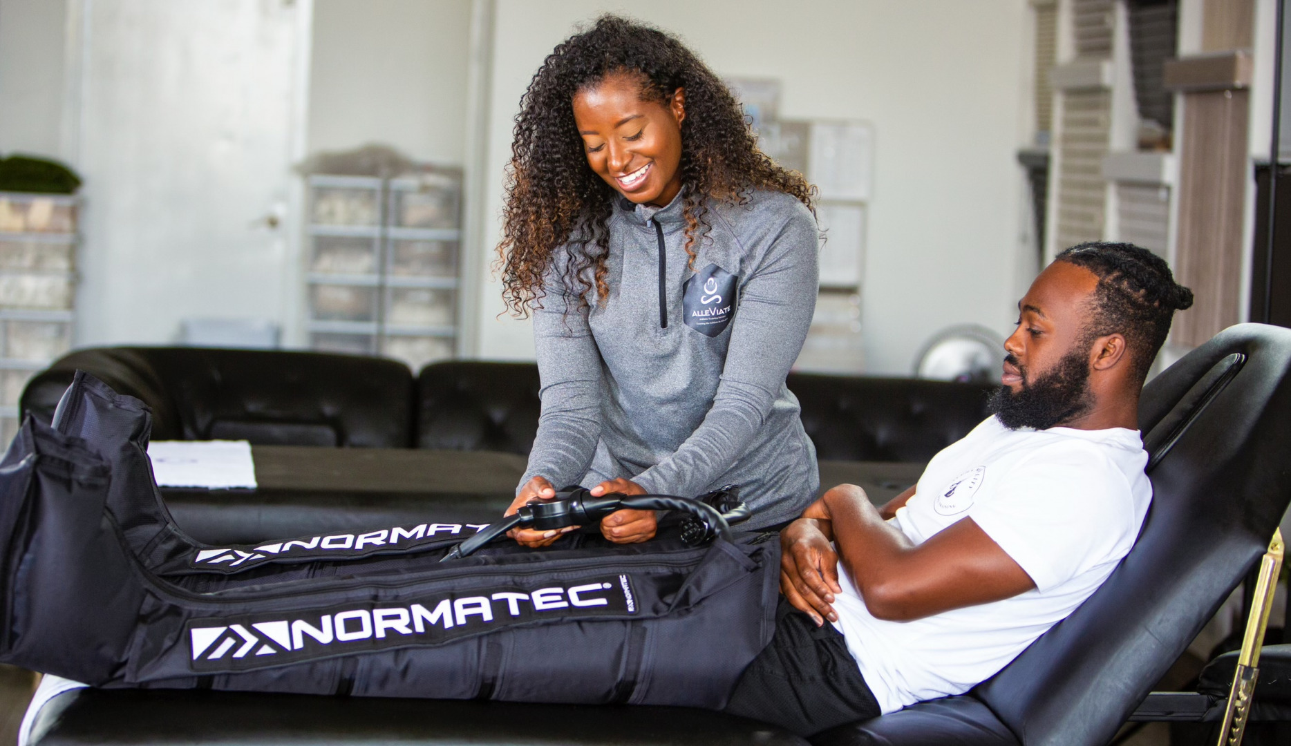 We created alleViate as a mobile wellness company to meet people where they are—literally and in their wellness journey. Whether you’re sitting at a desk all day, chasing after kids, recovering from a tough workout, or simply navigating the physical demands of life, our personalized recovery treatments are designed to help you move better, feel better, and live more fully.
