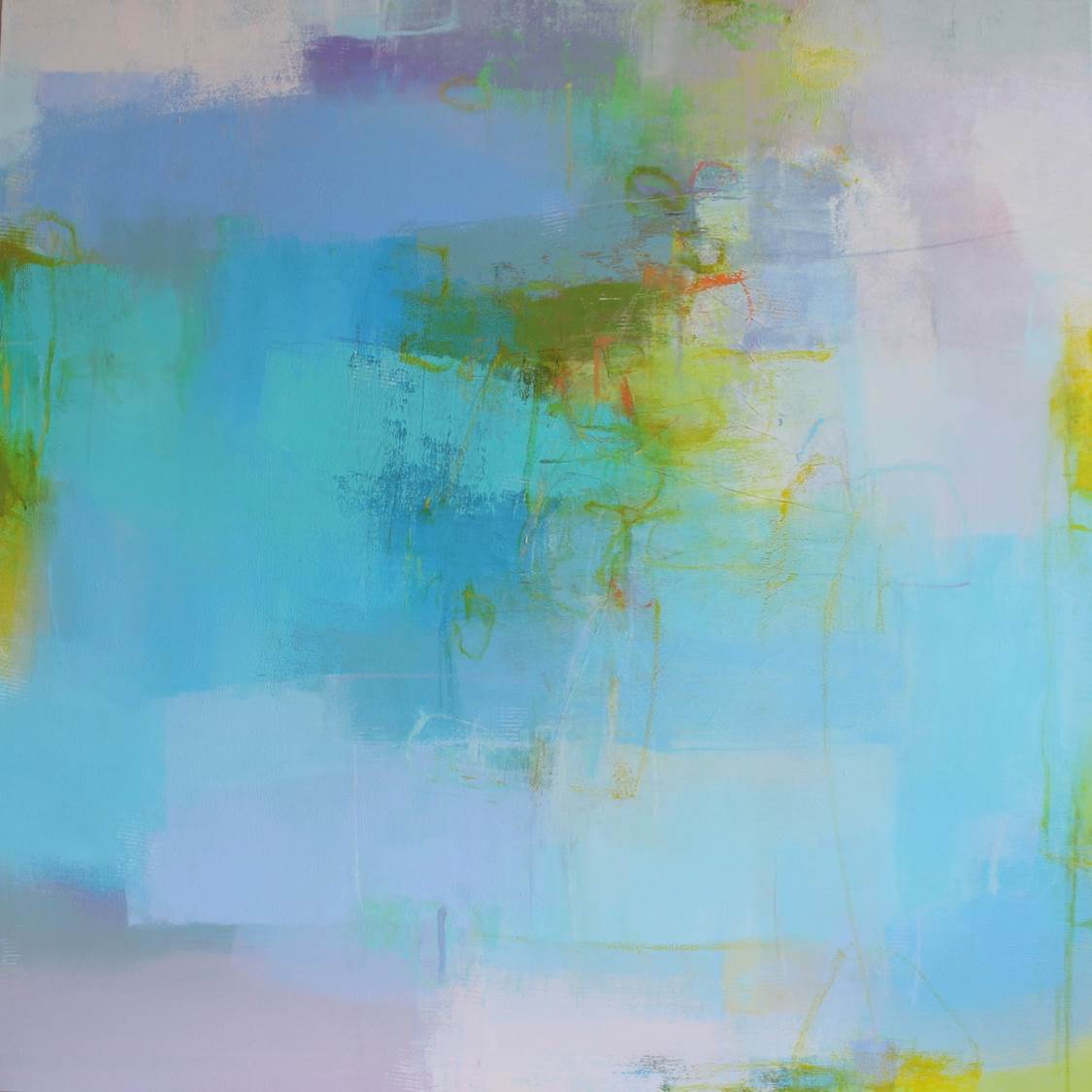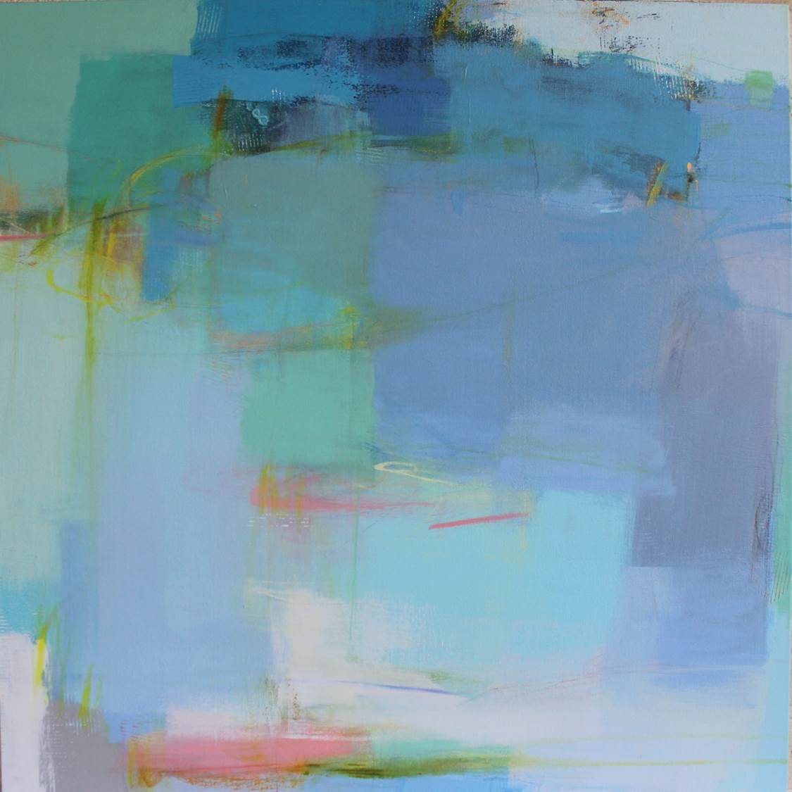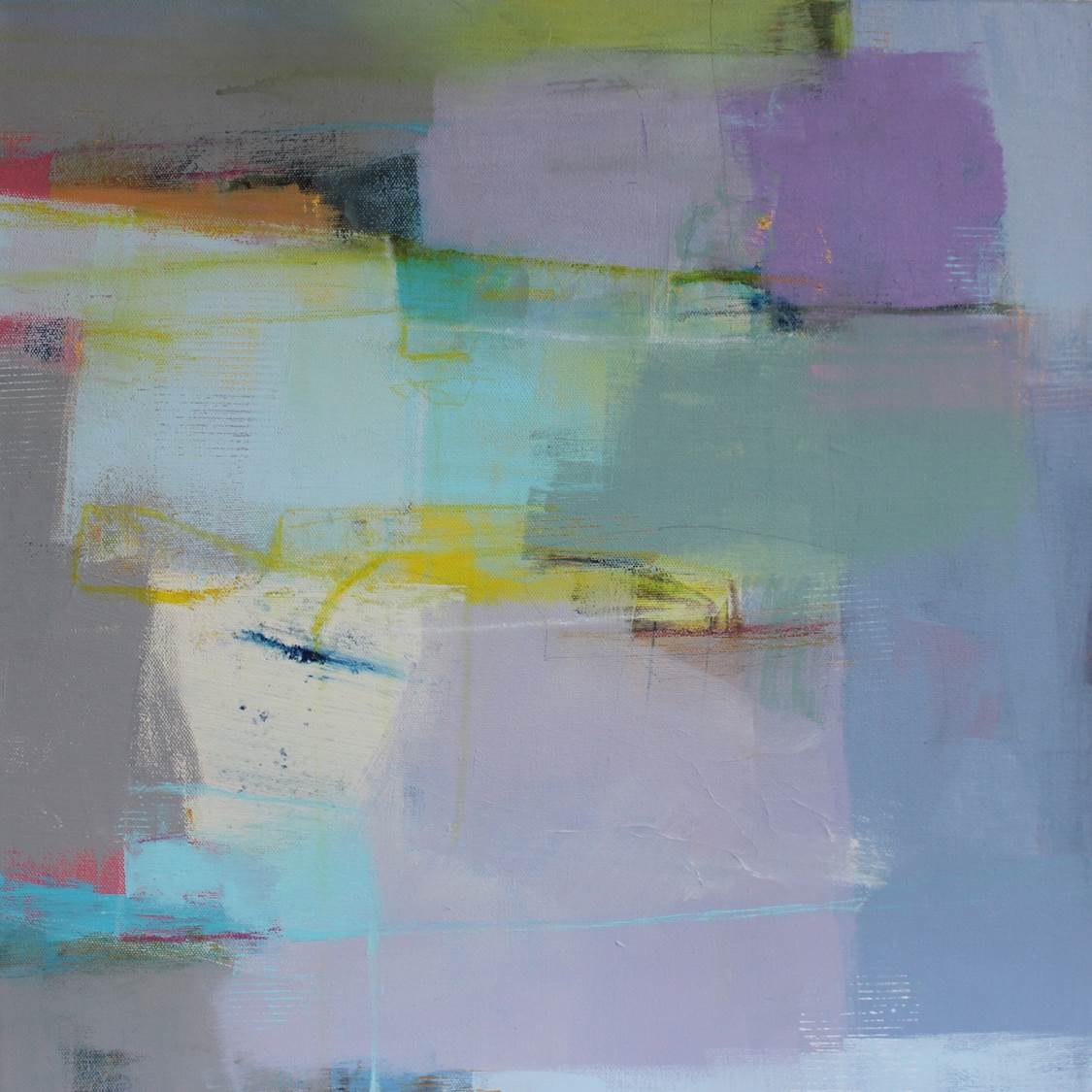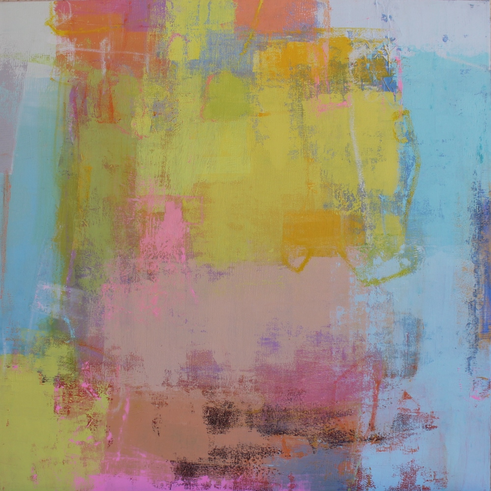 I have been creative for as long as I can remember. As a child making things with my hands gave me the most satisfaction. That inner creative voice stayed with me through many jobs and it was my husband who encouraged me to pursue my passion. I resumed painting and studied with many nationally recognized artists to learn new skills. Through much exploration I fell in love with abstraction and the many challenges it brings to the easel. There is no planning to my painting or even an idea to what the finished painting will be. I react to the initial marks or washes and let the painting guide me to its final completion. My intense love of color combined with shape, line and the addition of collage strike a balance and create a unique dialogue. Painting requires practice and discipline. An artist is faced with many hours honing your craft and the inevitable rejections along the way. My advice is to use those rejections as a driving force to move forward and create more art. Do whatever you need to do to create the art you were meant to create. Don’t be afraid to step outside of the box and put your work out there for the world to see.