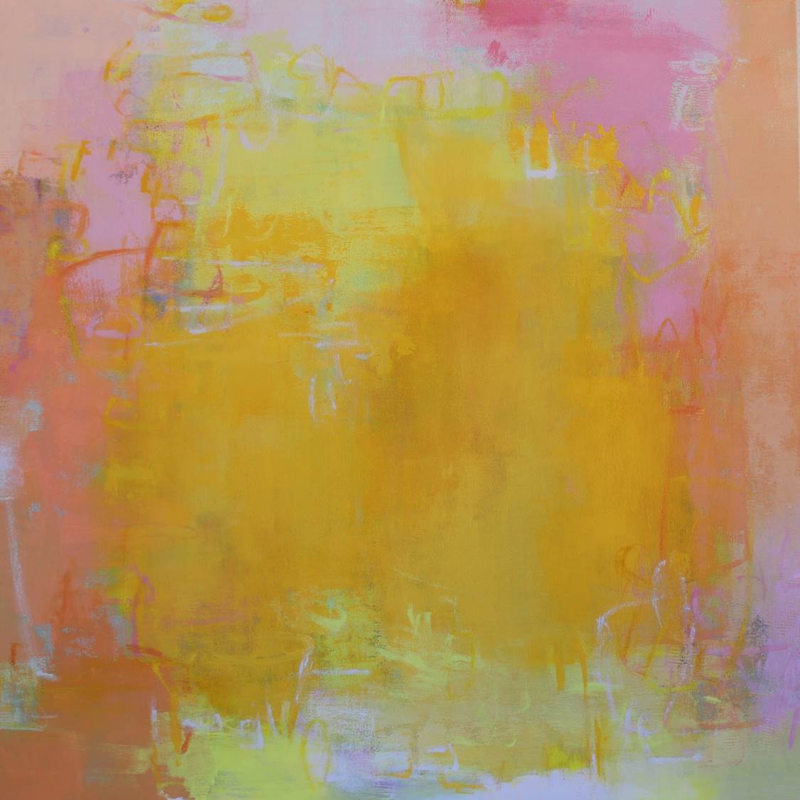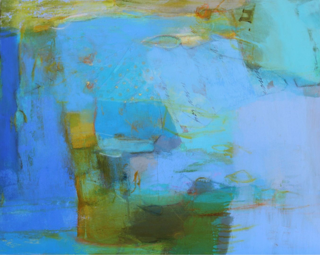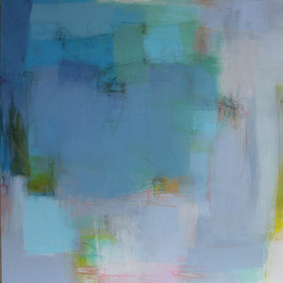 I have been creative for as long as I can remember. As a child making things with my hands gave me the most satisfaction. That inner creative voice stayed with me through many jobs and it was my husband who encouraged me to pursue my passion. I resumed painting and studied with many nationally recognized artists to learn new skills. Through much exploration I fell in love with abstraction and the many challenges it brings to the easel. There is no planning to my painting or even an idea to what the finished painting will be. I react to the initial marks or washes and let the painting guide me to its final completion. My intense love of color combined with shape, line and the addition of collage strike a balance and create a unique dialogue. Painting requires practice and discipline. An artist is faced with many hours honing your craft and the inevitable rejections along the way. My advice is to use those rejections as a driving force to move forward and create more art. Do whatever you need to do to create the art you were meant to create. Don’t be afraid to step outside of the box and put your work out there for the world to see.