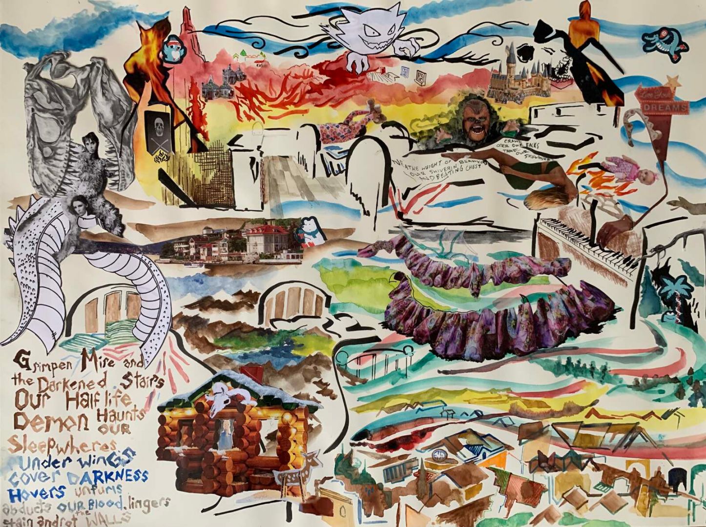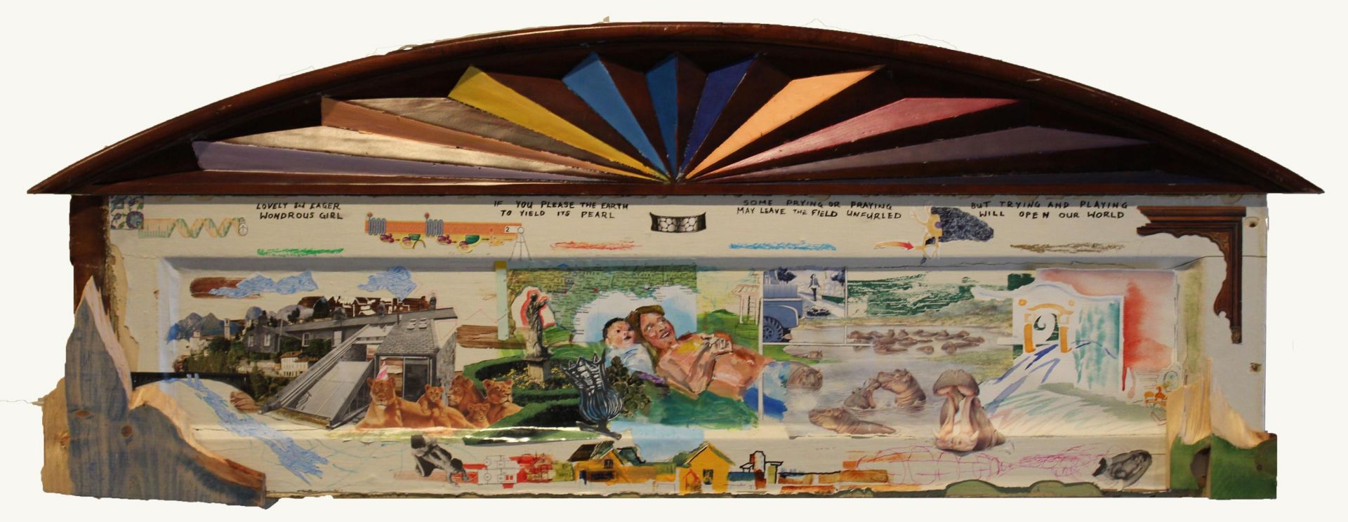 I usually describe my work as mixed-media collage: it’s the biggest umbrella that fits my mix of found images, and objects, with my own painting, printmaking and writing. My work has a home-spun feel to it, but still opens up little worlds of my own imagination.