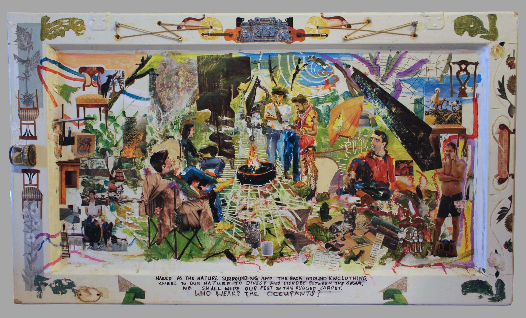 I usually describe my work as mixed-media collage: it’s the biggest umbrella that fits my mix of found images, and objects, with my own painting, printmaking and writing. My work has a home-spun feel to it, but still opens up little worlds of my own imagination.