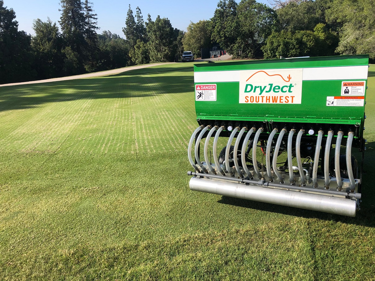 As a business, we offer contracted turfgrass aeration services to golf courses, athletic fields and even high-end landscapes. We are always adapting to market demands to better serve our customers and we try to stay involved in local associations, etc. to anticipate those demands. I have worked in the turfgrass industry for many years now, I have specifically been in contracted aeration services for 9 years now. I became involved with DryJect technologies in 2014, the offerings that this technology has is very exciting to me due to its unique system and the results that it yields. It was not “easy” to get to where I am today, but it honestly does not feel like a huge struggle because I truly do love what I do on a daily basis and the majority of the results that we get are derived from the fact that I enjoy the work and would be doing this work regardless of owning the business or not! I have certainly learned a few lessons along my journey so far. Primarily, surround yourself with relationships to those who will keep you in the right position to be successful. This includes references, technical advice, FINANCIAL advice and of course personal support. DryJect Southwest is service oriented company that ultimately thrives on the product that our customers can provide to their end-users, including golfers, athletes, universities and businesses in general. I have been in the shoes of turf managers and I try to use that experience to help my services seamlessly fit into their management practices, with a focus on time frames and overall value.
