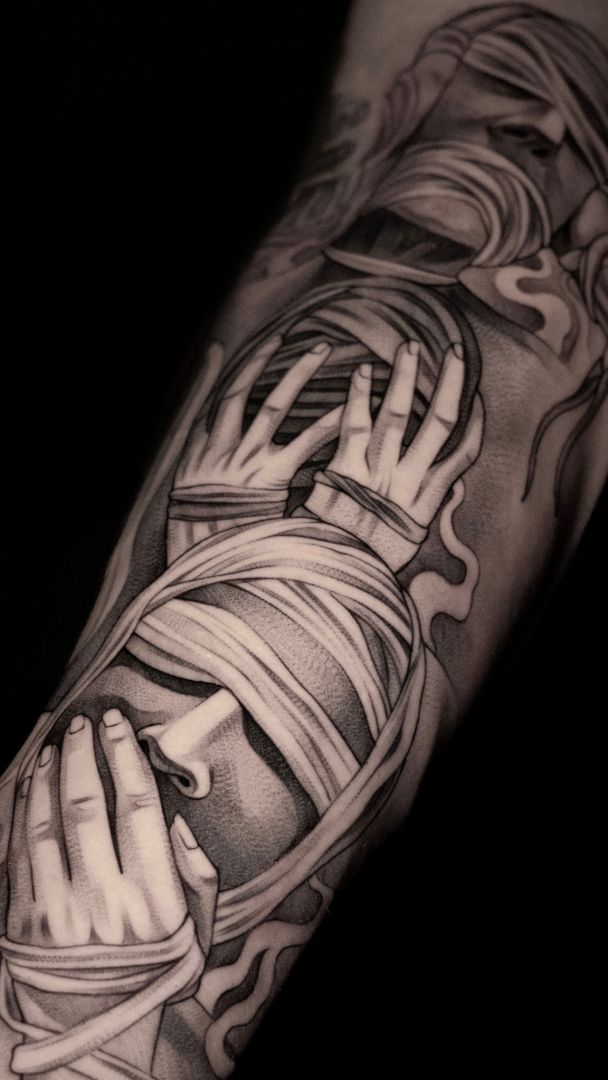 My tattoos, my art is inspired by the timeless works of the old masters. The deep engagement with the Craft is incredibly important to me and determines my work process. This will to advance as deeply as possible into the art and to explore all its facets, led to my art studies in Hamburg. Through this intense exploration, I have developed a personal style that I work on daily and strive for perfection. As with the old masters, it is not only the end result that is important to me, but the process that led to it. On the journey to the final result there are many questions to answer and decisions to make. I devote a lot of attention and time to these questions and decisions in order to achieve a unique goal. For this quality I had to make many sacrifices, such as the long distance to my family and friends, as well as the rare time off. My art accompanies me everywhere, it is all present and I am always working to improve it. Even if I don’t have a pencil or a tattoo machine in my hand right now, my head and eyes keep working and looking for more inspiration and potential for improvement. I want my clients to experience this intense process for themselves and that’s why I devote so much time and attention to it. This is the only way I can capture their ideas and stories in their most honest form and turn them into images.