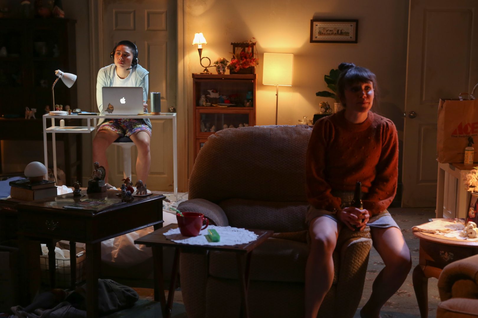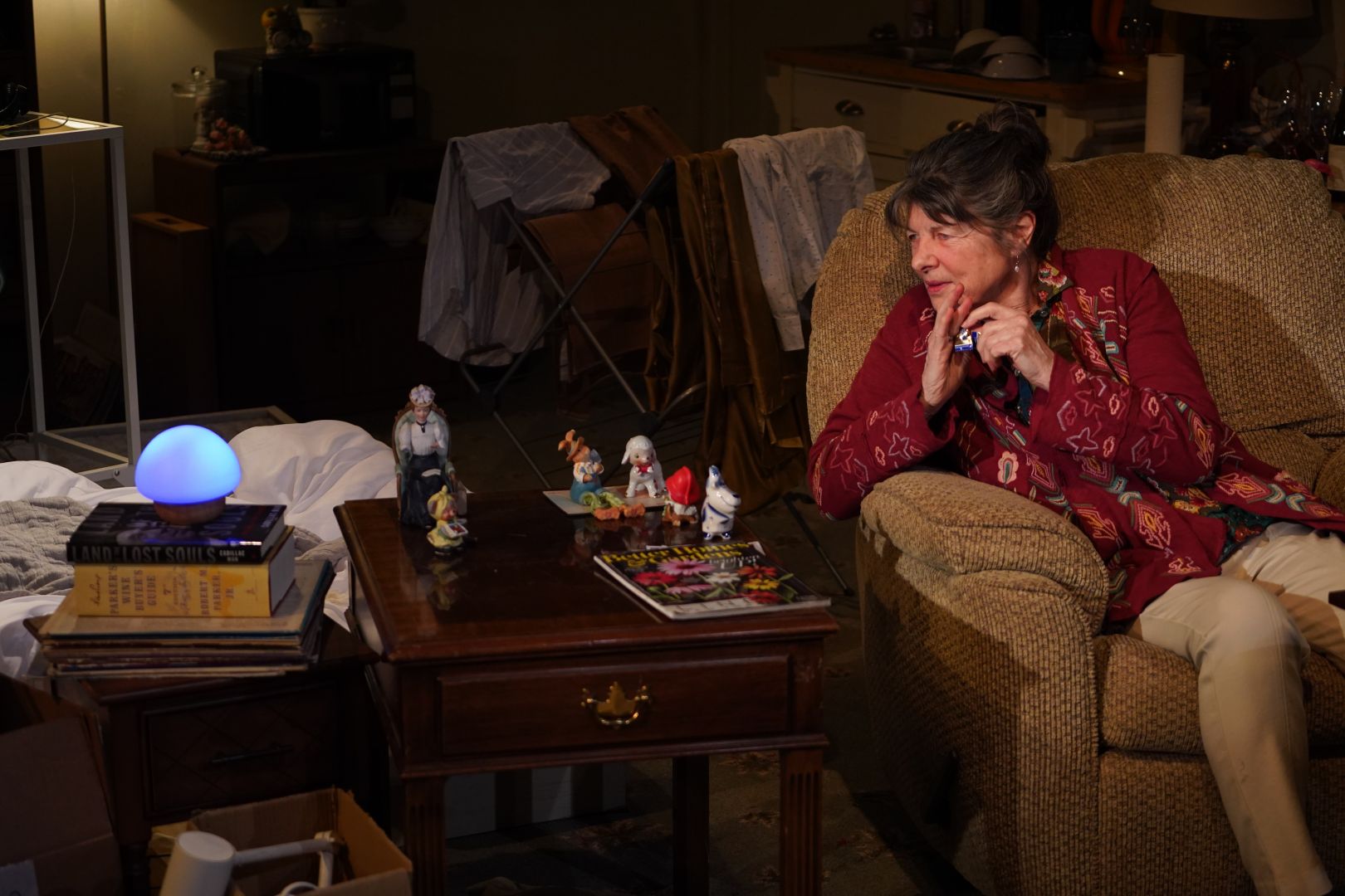 For my recent design on OFF Boardway at Ensemble Studio Theater, Smart, written by Mary Elizabeth Hamilton, and directed by Matt Dickson. A show about three women seeking companionship turns to an Alexa-like digital presence “Jenny” in this family drama. I designed a space where characters including the audience are all trapped in a giant white container, filled with messy clusters which prop designer Caitlyn Murphy did an excellent visualization.