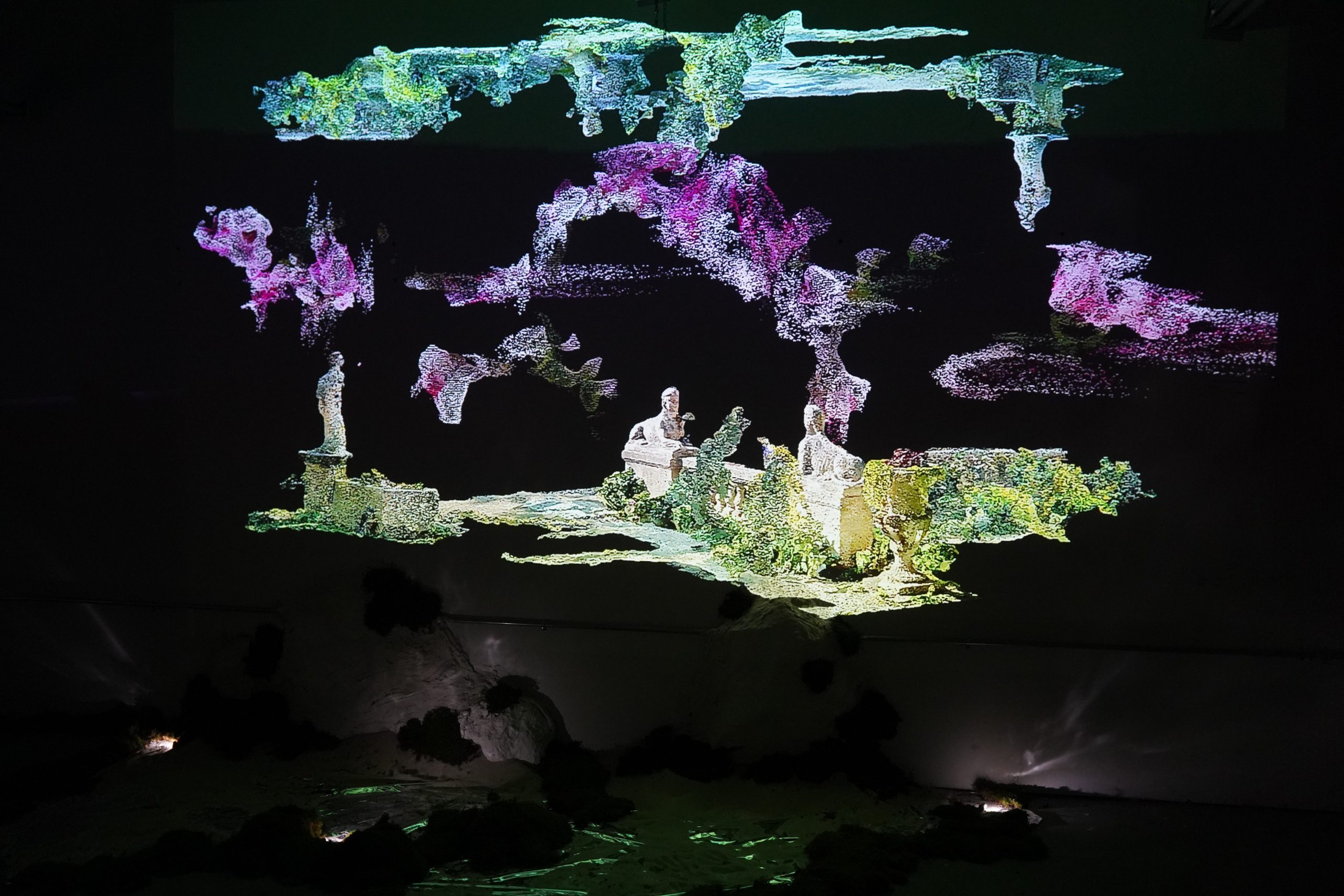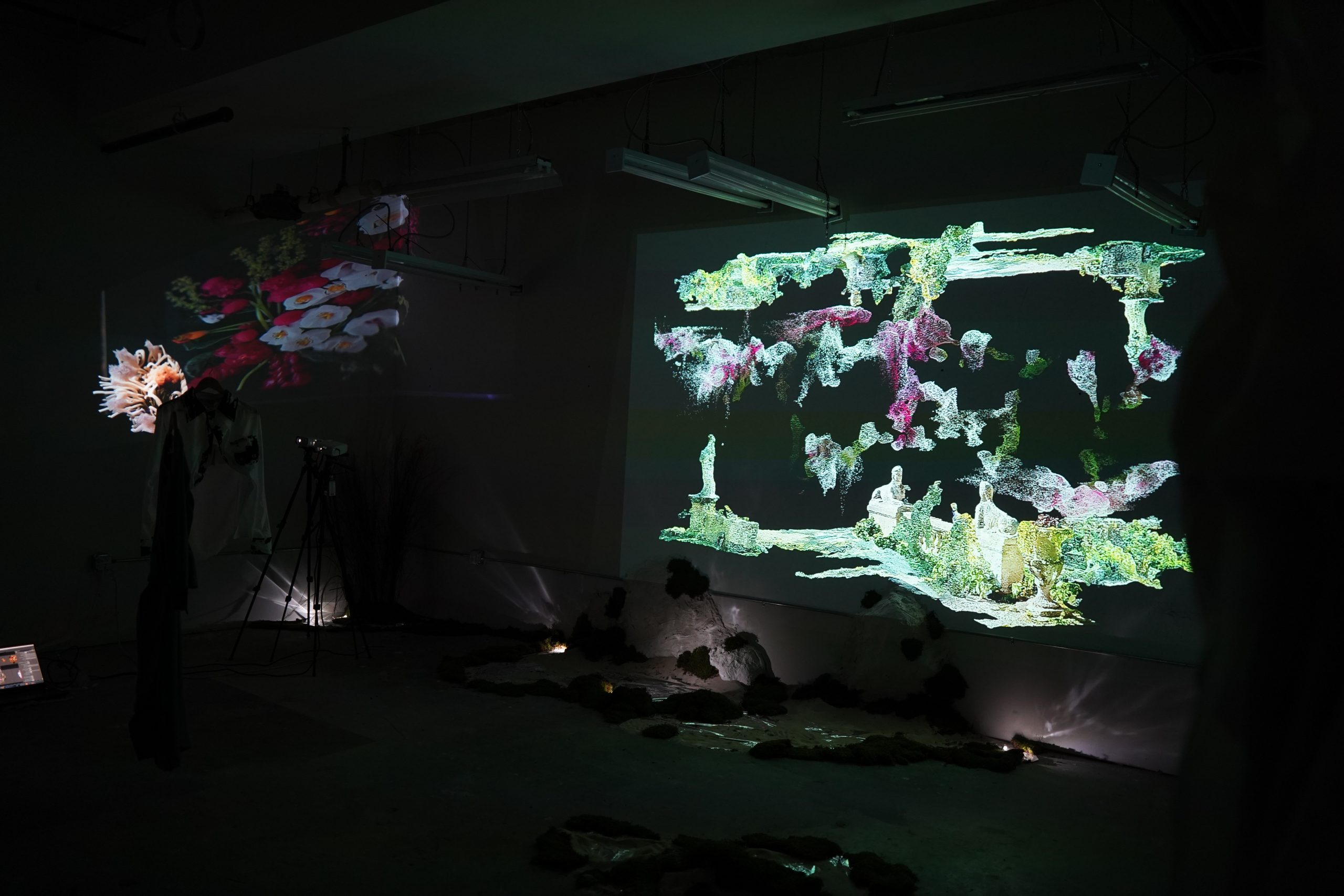 These images showcase a recent showroom display we created for a fashion brand. The concept draws inspiration from underground plant life, with AI-assisted visuals helping bring the idea to life. Using AI, I generated initial footage, which became the foundation for this final setup.
