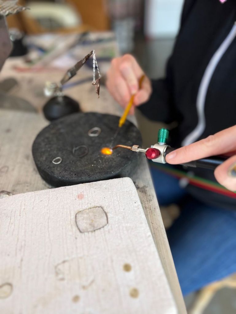 The majority of my jewelry pieces are inspired by my childhood home, Tucson, Arizona. I take inspiration from the desert landscape (purple mountains, firey sunsets, majestic saguaros), and southwestern/ western love of rodeo (horses, cowboy boots, bolos, silver, etc.). Some designs transpire after seeing a particular gem or mineral… it’ll inspire the piece it becomes, or vice versa- I have a design in mind and seek out the perfect stone to match the piece. Read more>>
